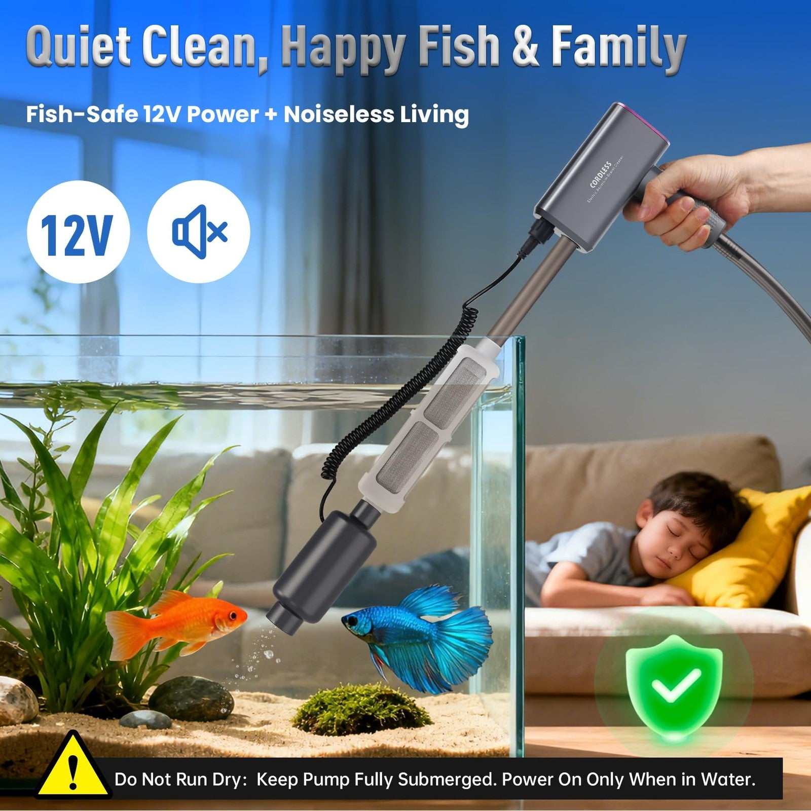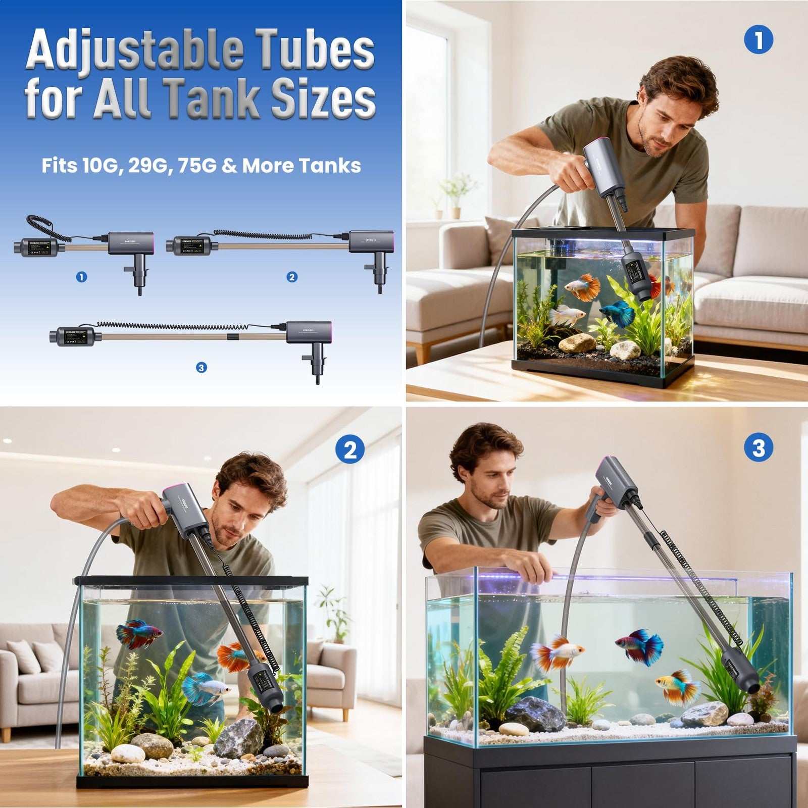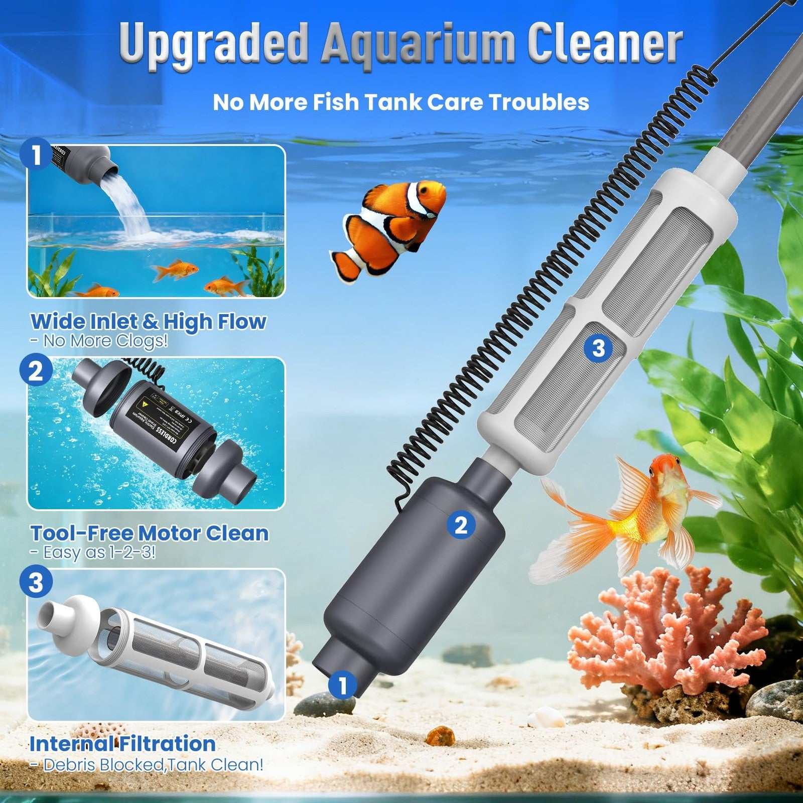 Rechargeable Electric Aquarium Gravel Cleaner 4 Adjustable Suction Fish Tank Wat