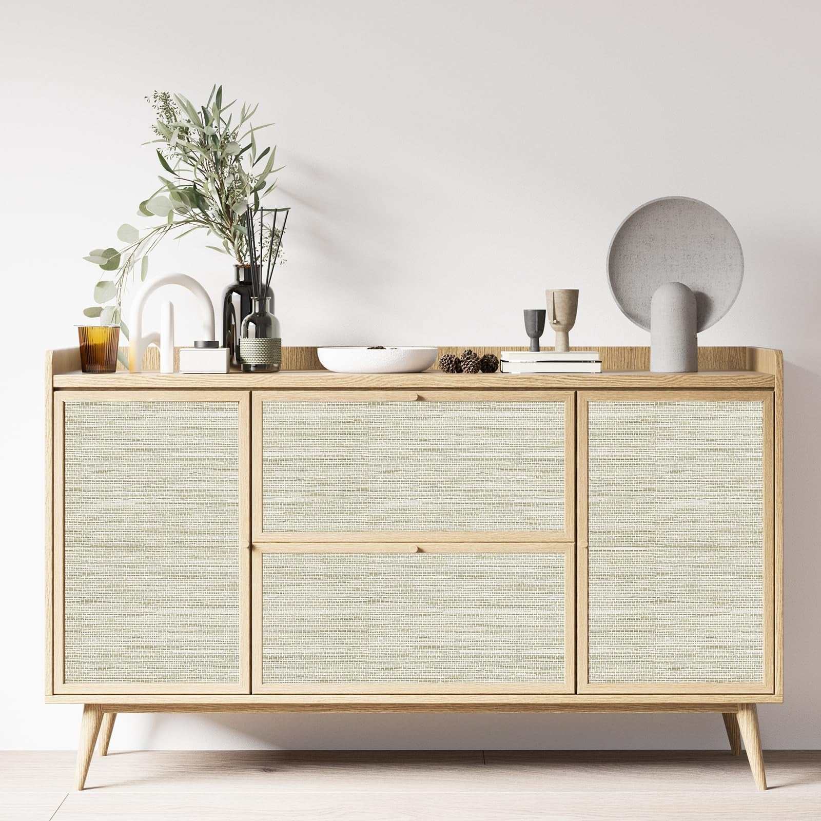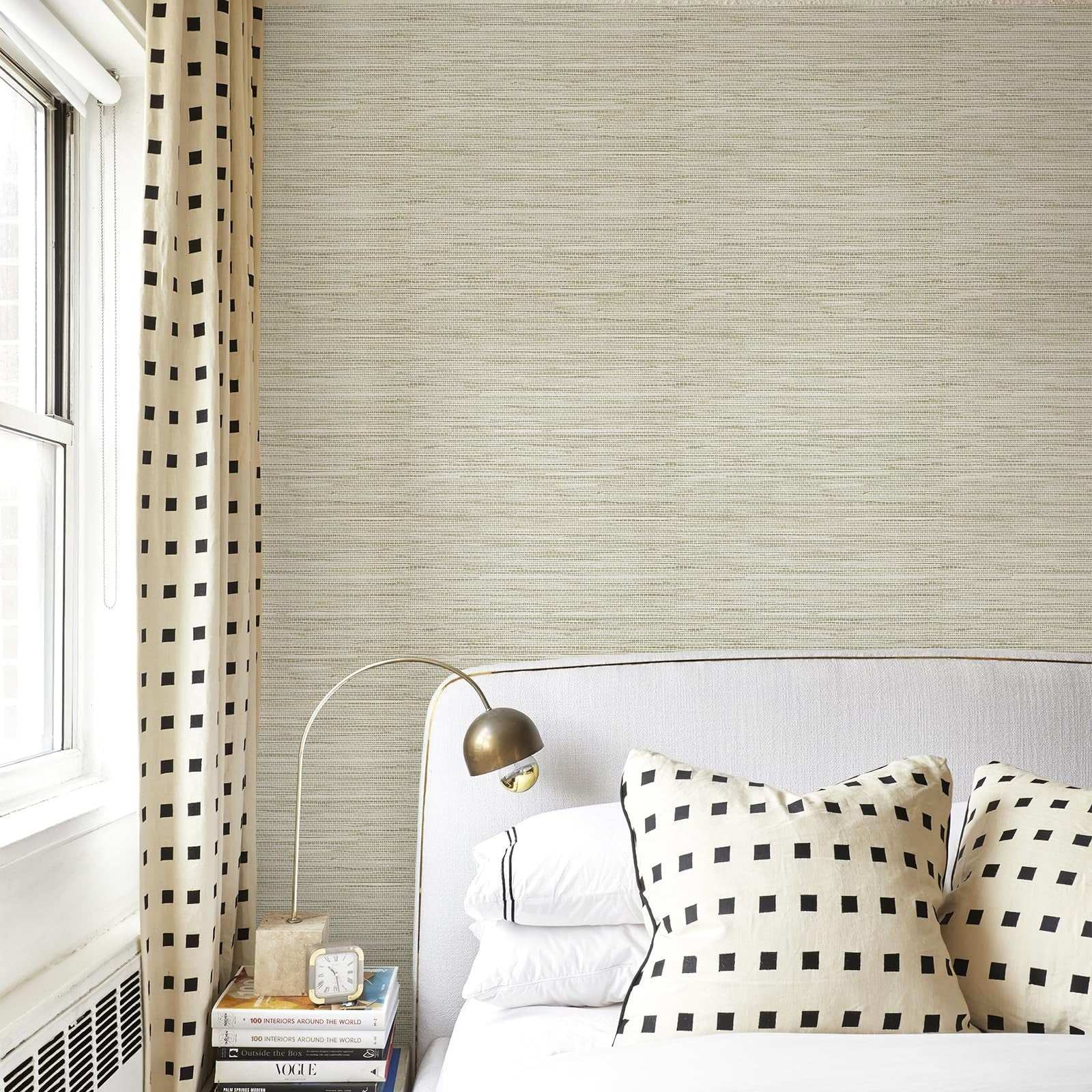 Simon&Siff Cream Textured Grasscloth Peel & Stick Wallpaper 17.7"x197" Neutral