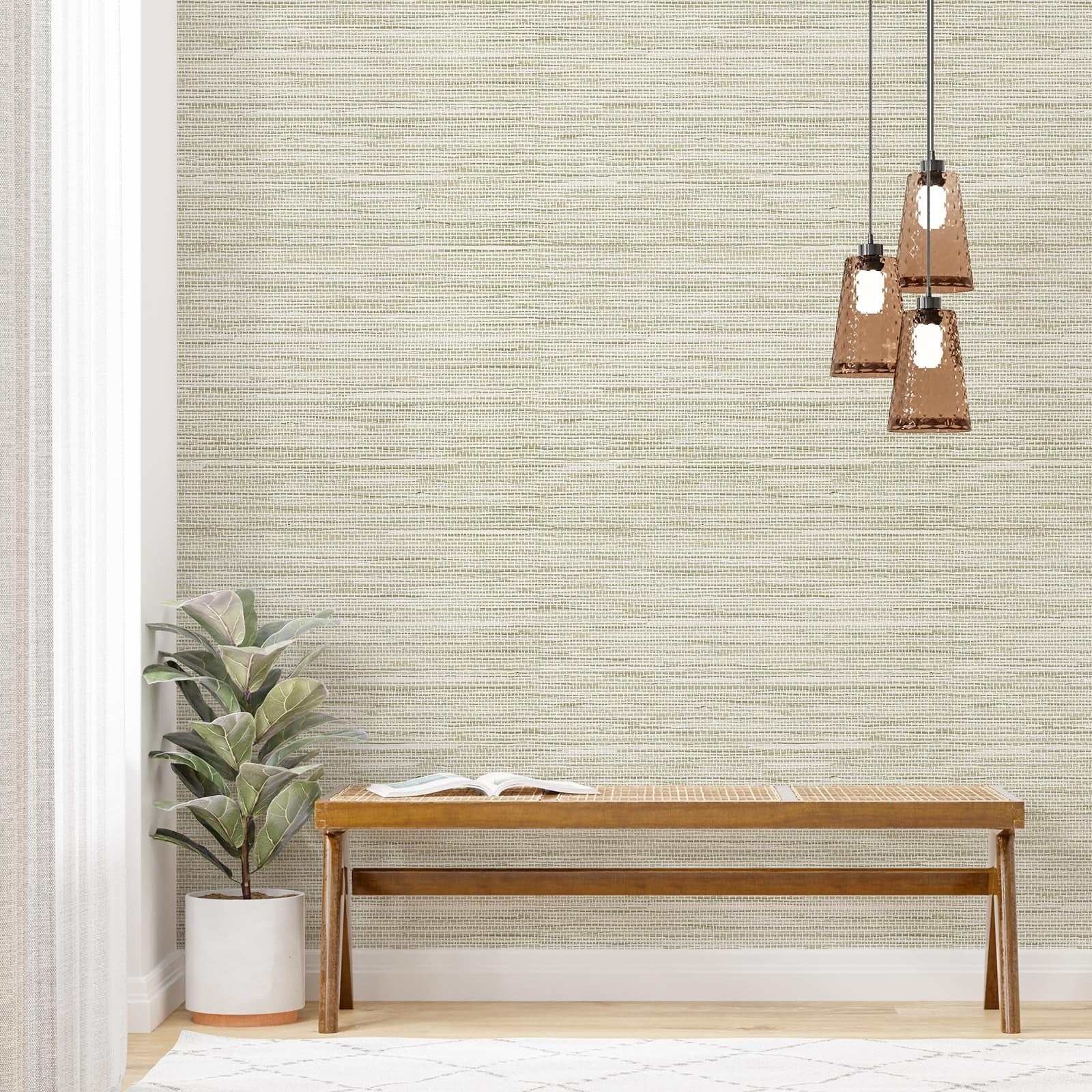 Simon&Siff Cream Textured Grasscloth Peel & Stick Wallpaper 17.7"x394" Neutral