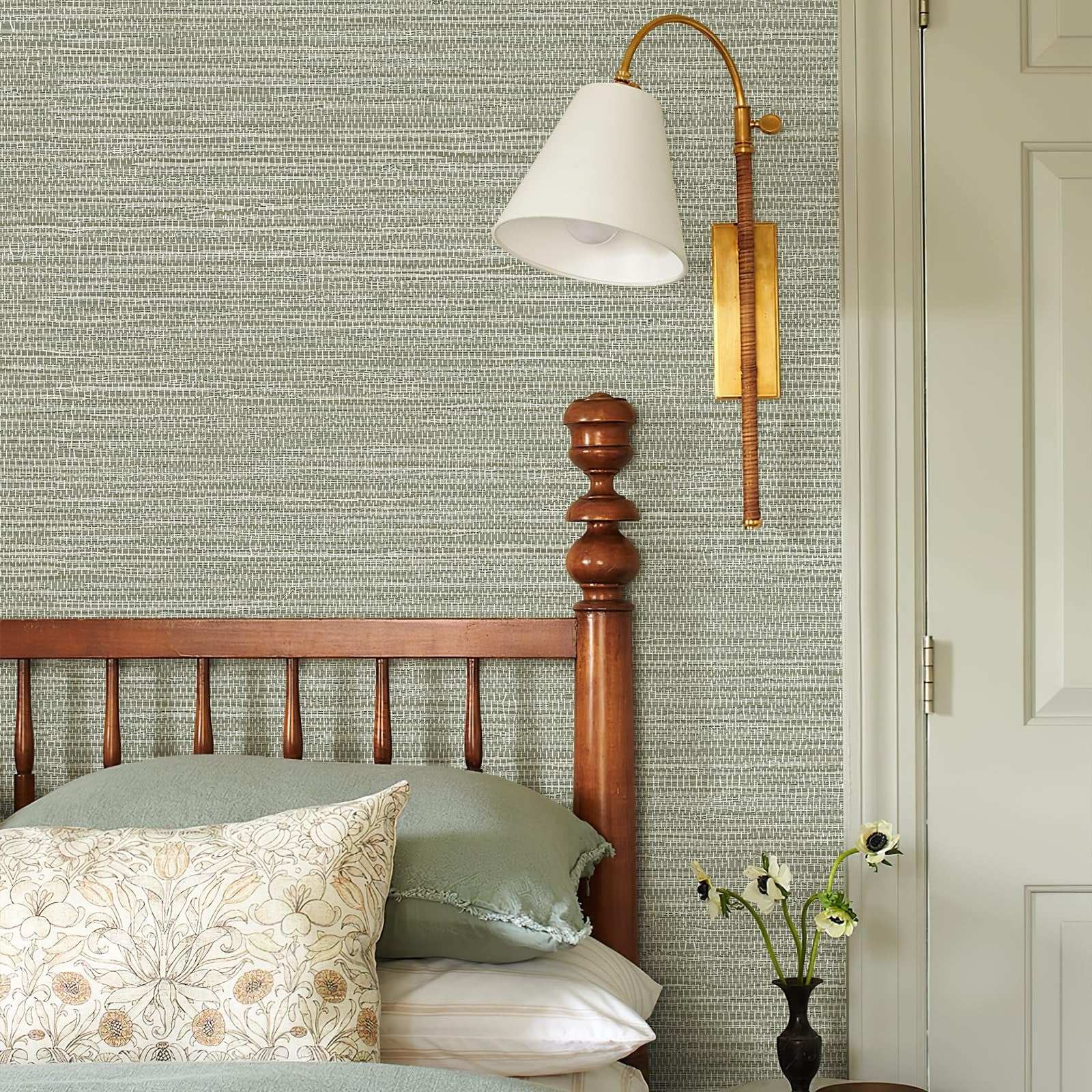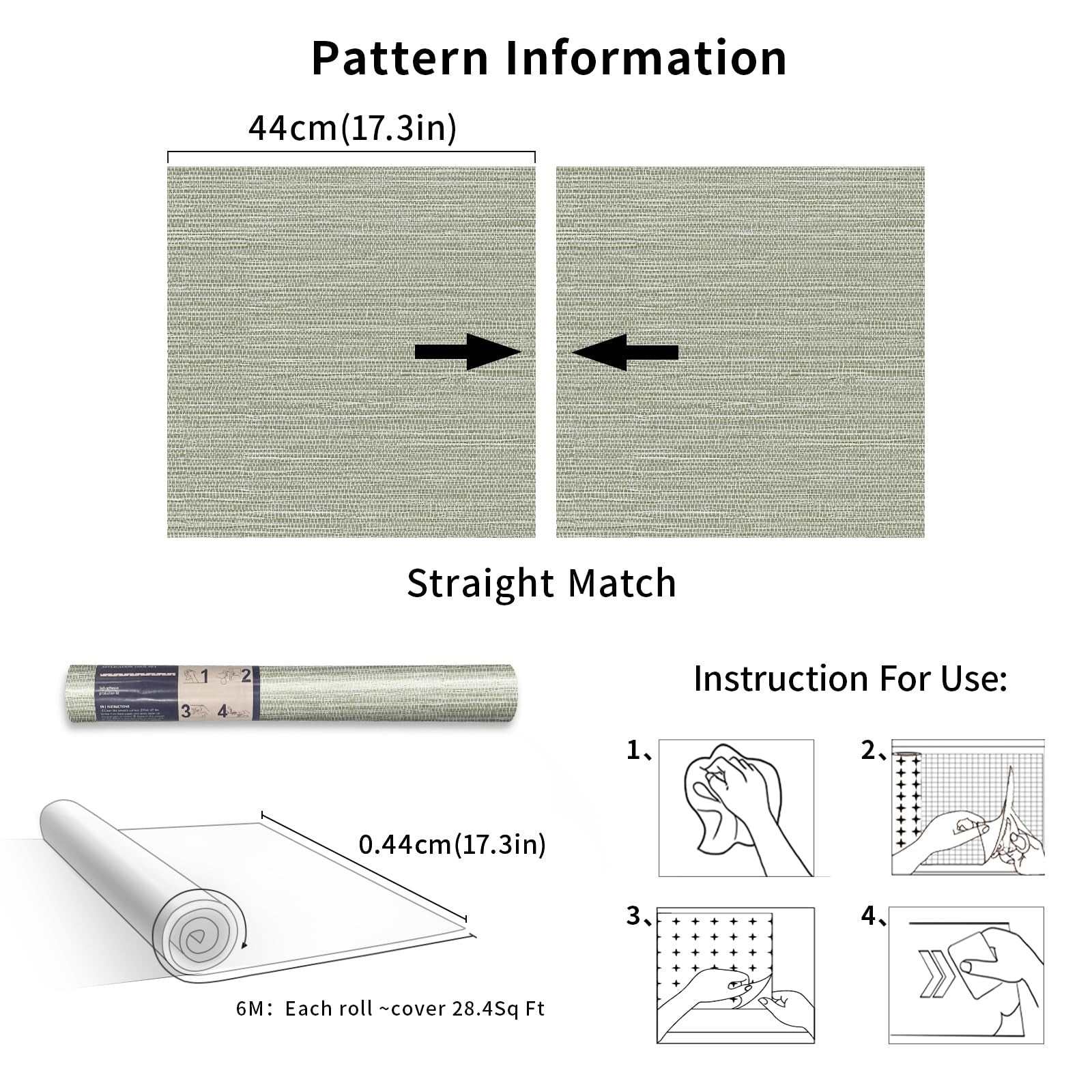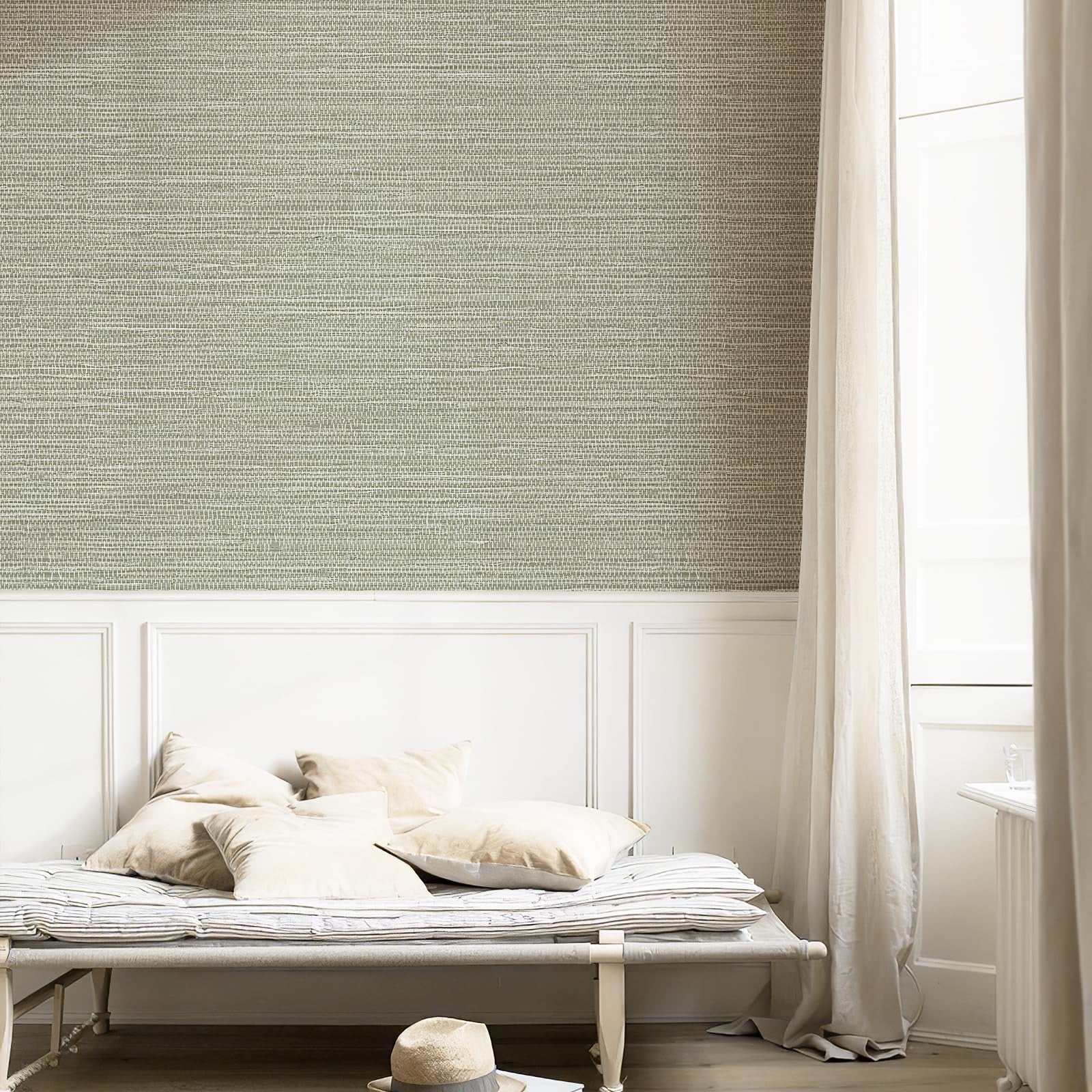 Simon&Siff Green Textured Grasscloth Peel & Stick Wallpaper 17.7"x197" Neutral