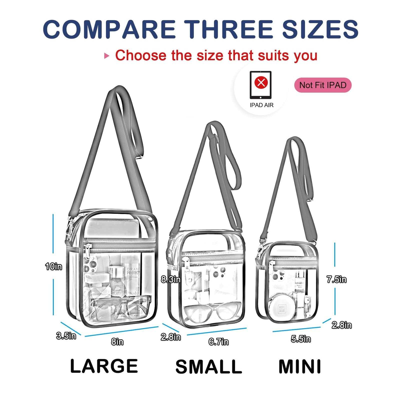 USPECLARE Clear Messenger Bag Stadium Approved Transparent Purse for Men Women