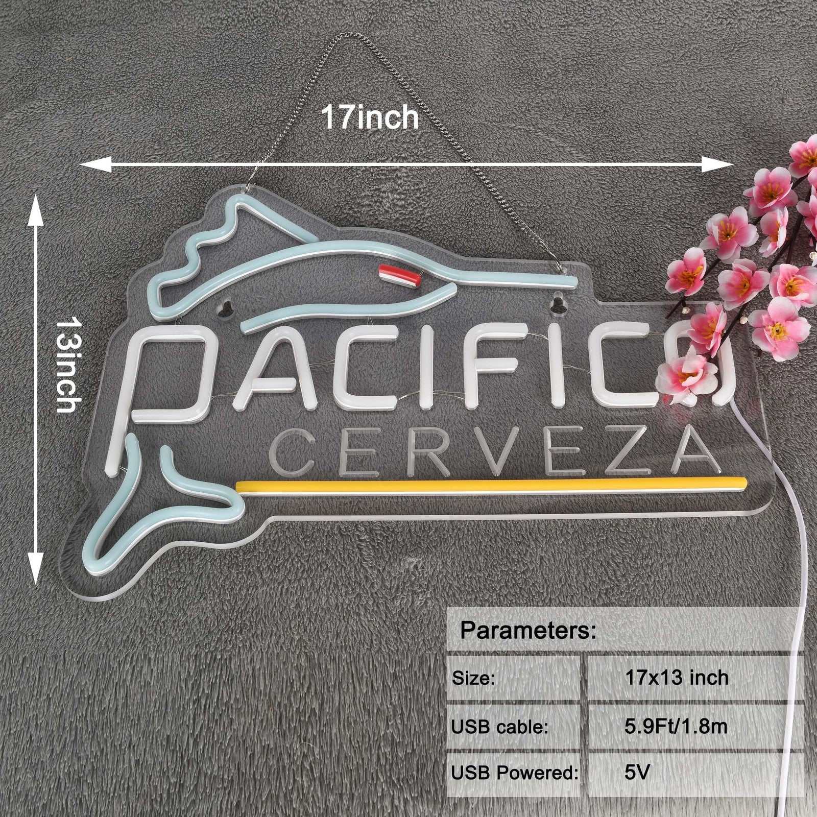 Yooyneon Pacific Neon Sign Beer Bar Cerveza Swordfish Art Man Cave Wall Light