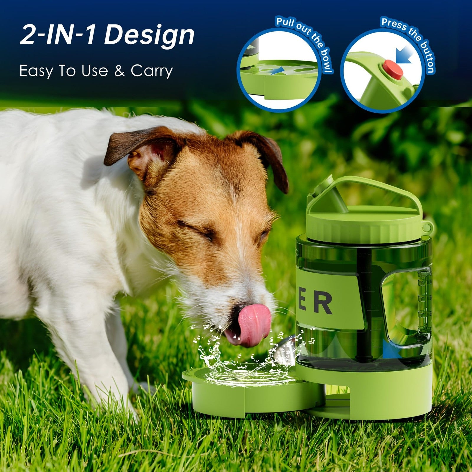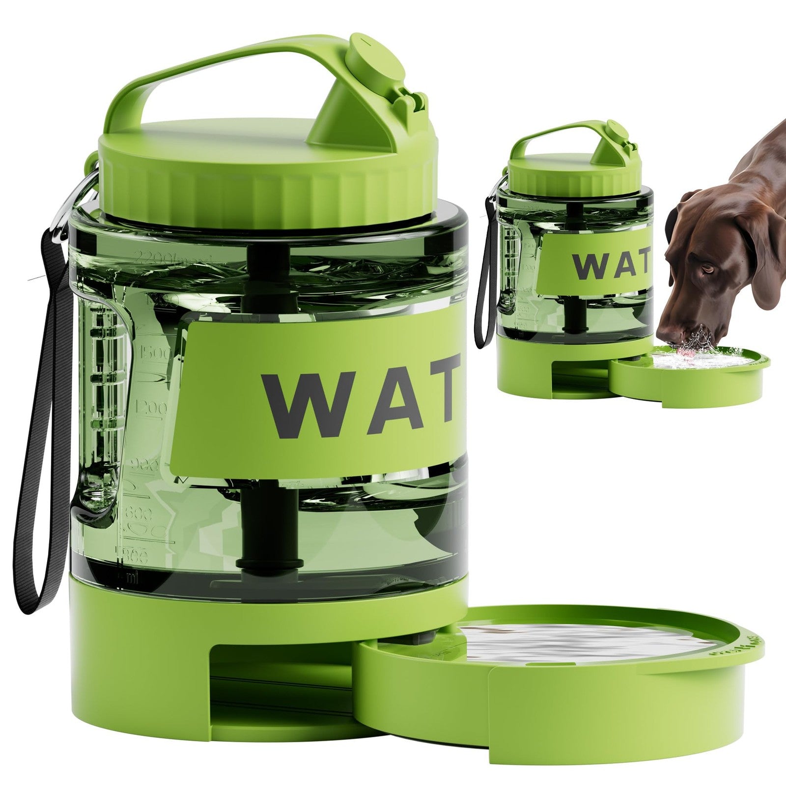 77oz Dog Water Dispenser, Large Travel Bottle, Pull-Out Bowl, Camping Essentials