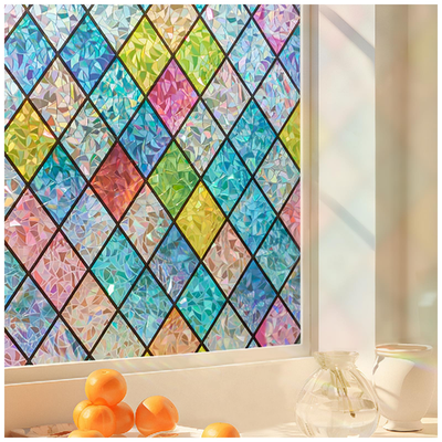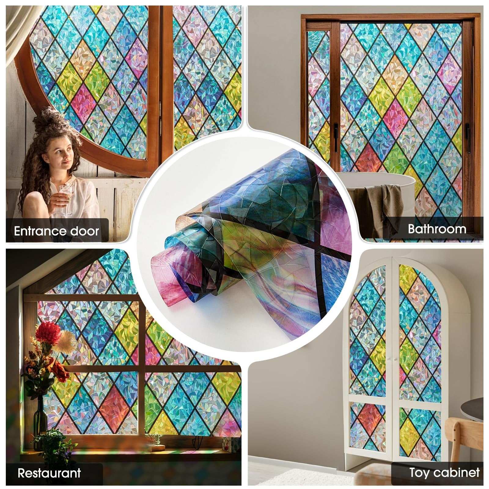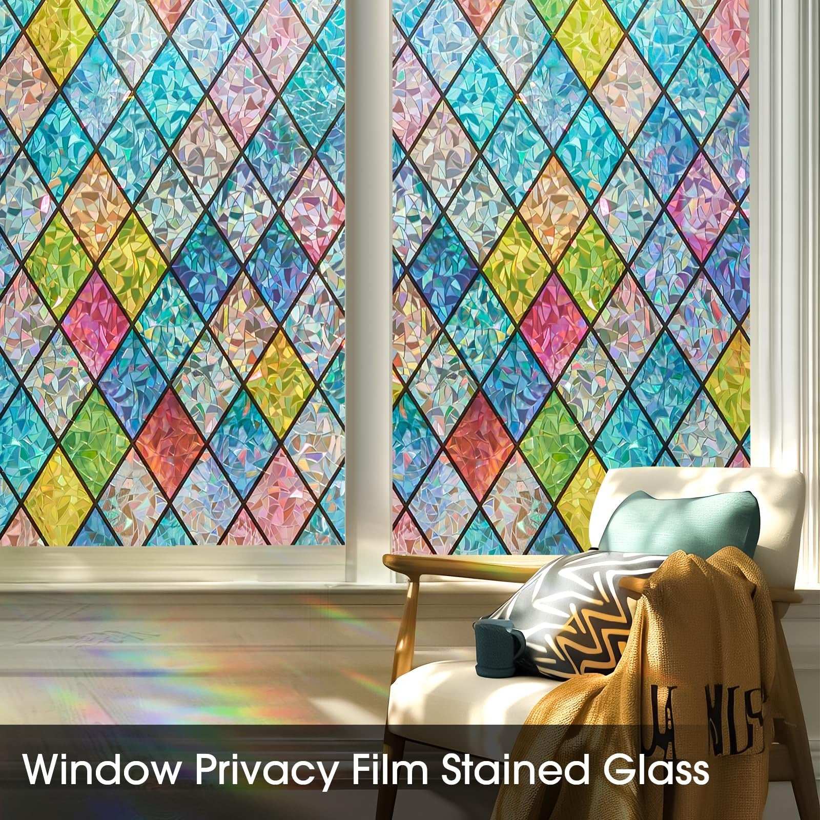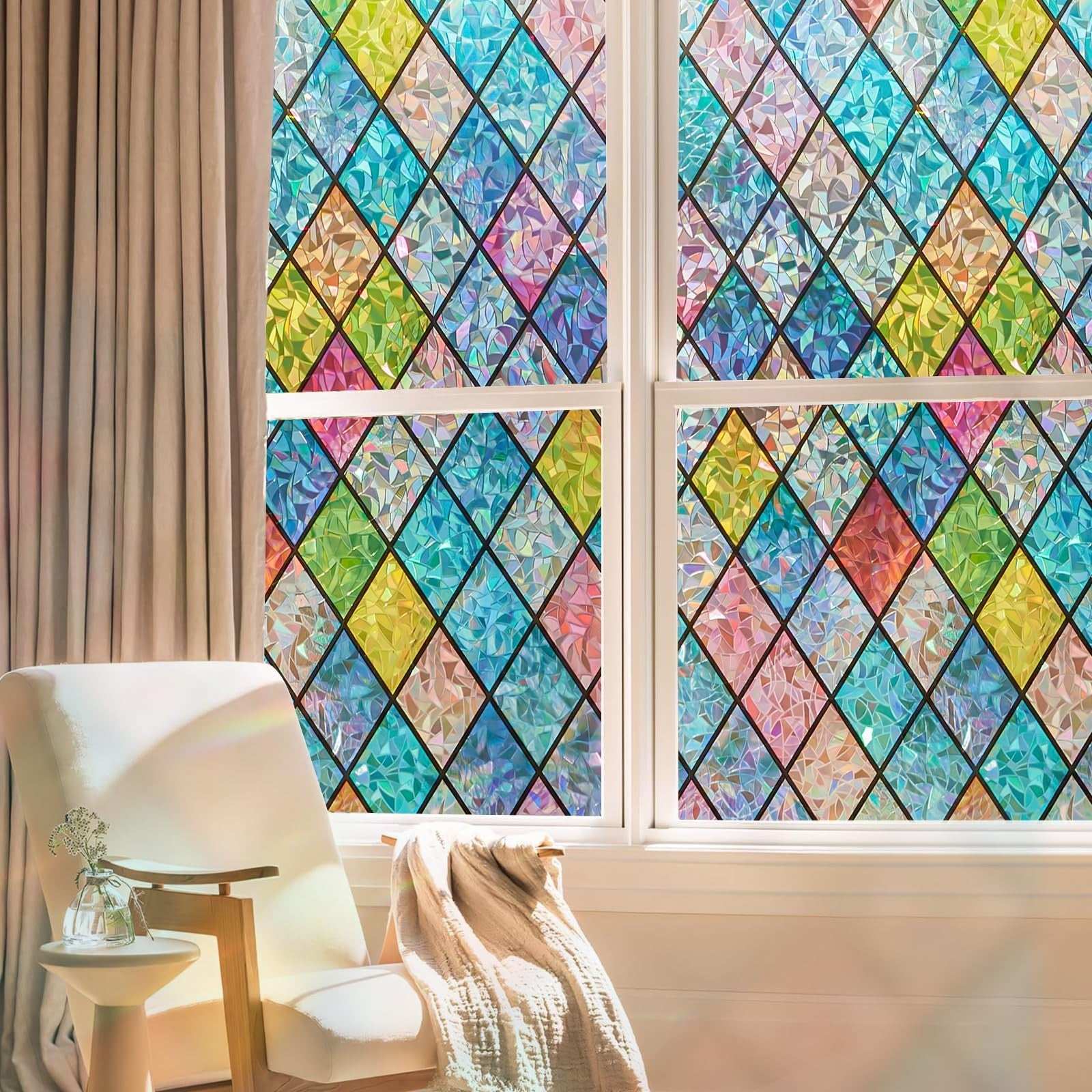 Beautysaid Stained Glass Rainbow Window Privacy Film Decorative Static Cling