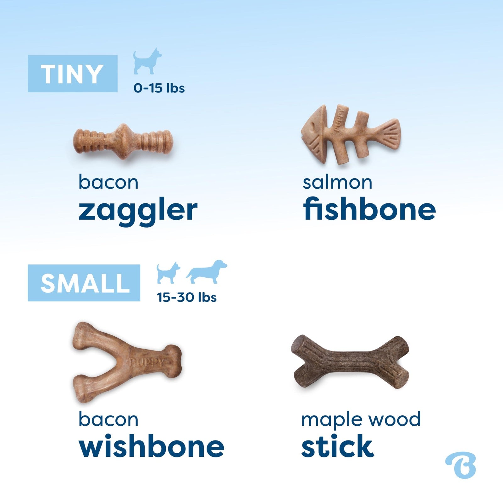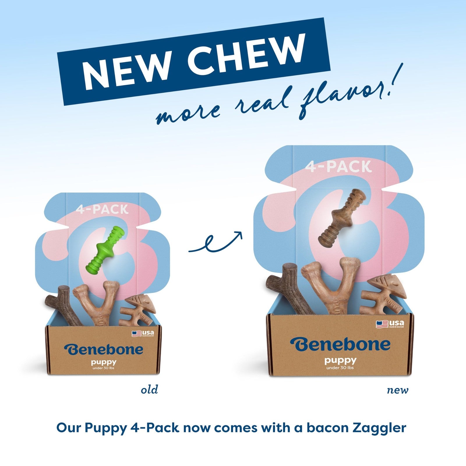 Benebone Puppy 4-Pack Chew Toys - USA Made, Under 30lbs, Moderate Chewers