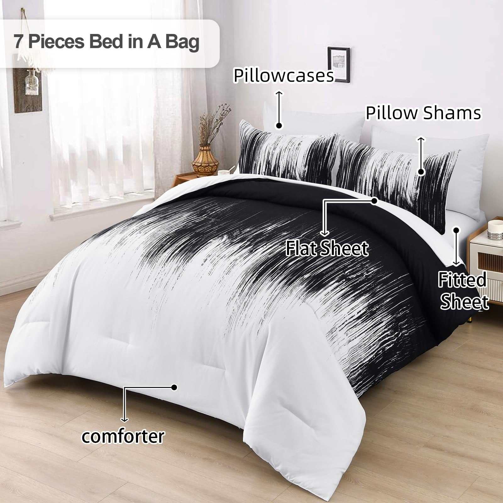 Dinjoy Ombre Black White King Comforter Set Boho Bedding Gradient