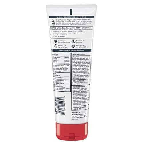 Eucerin Daily Hydration Body Cream, SPF 30 Sunscreen for Dry Skin, 8 oz