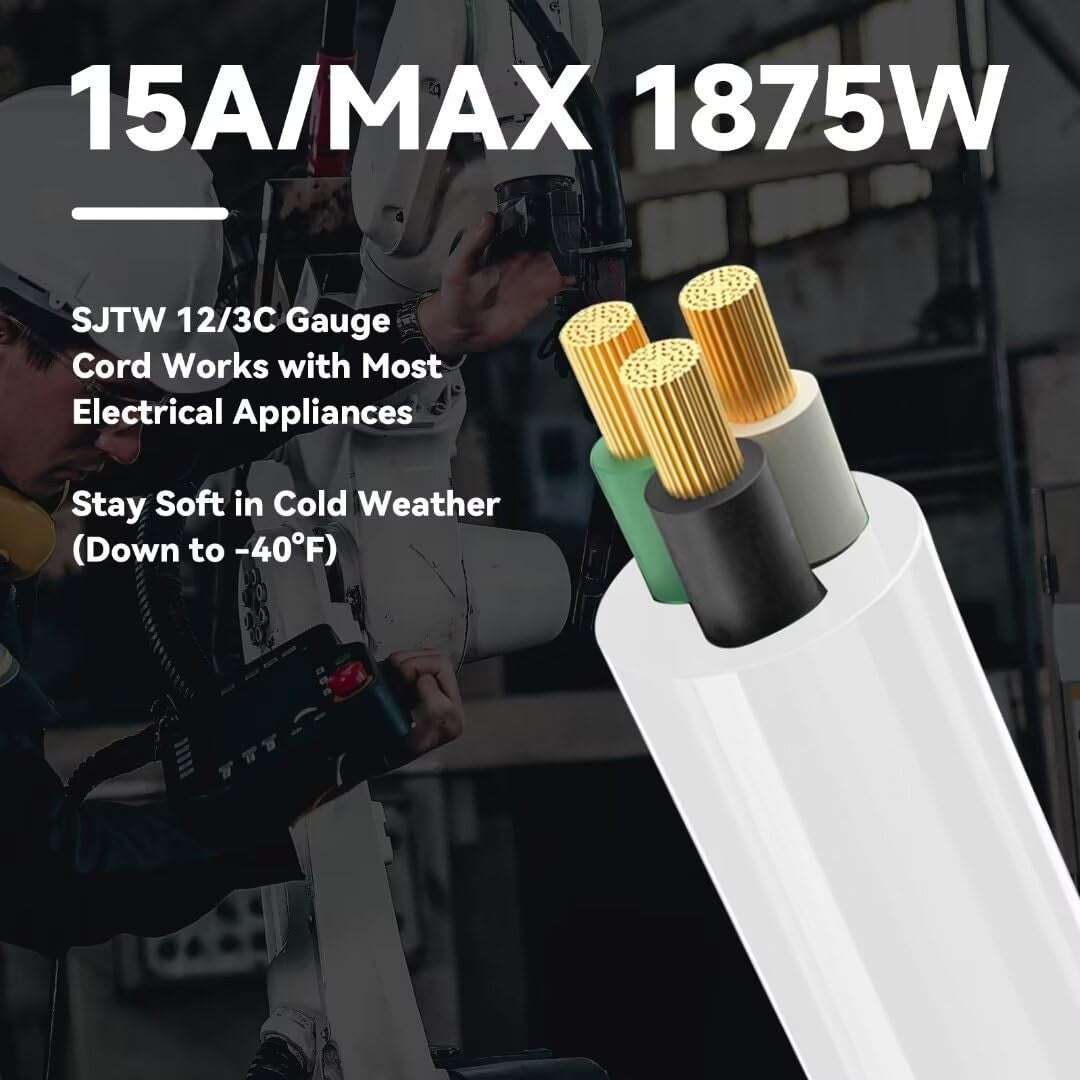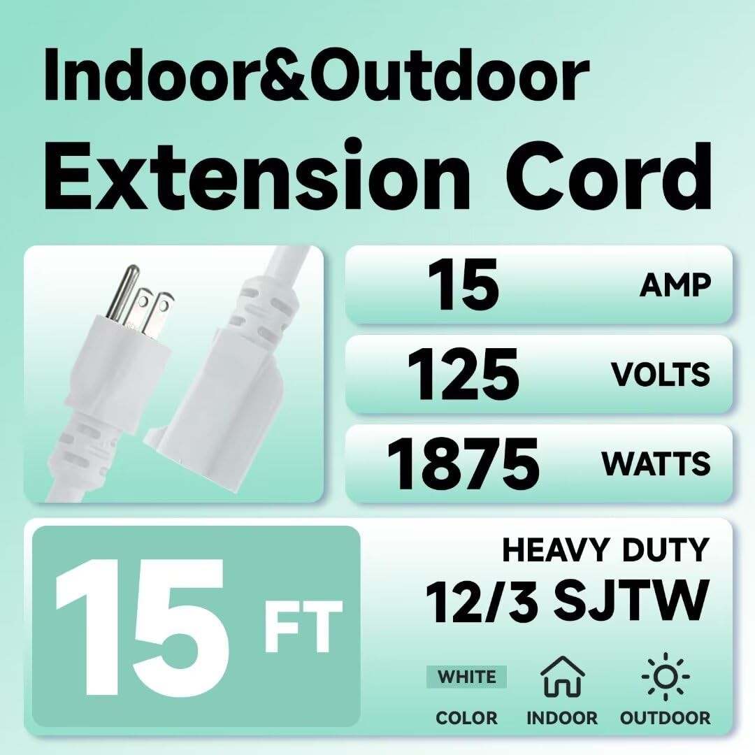 FNXPOW 12AWG 15ft Outdoor Extension Cord, 3 Prong Weatherproof Heavy Duty