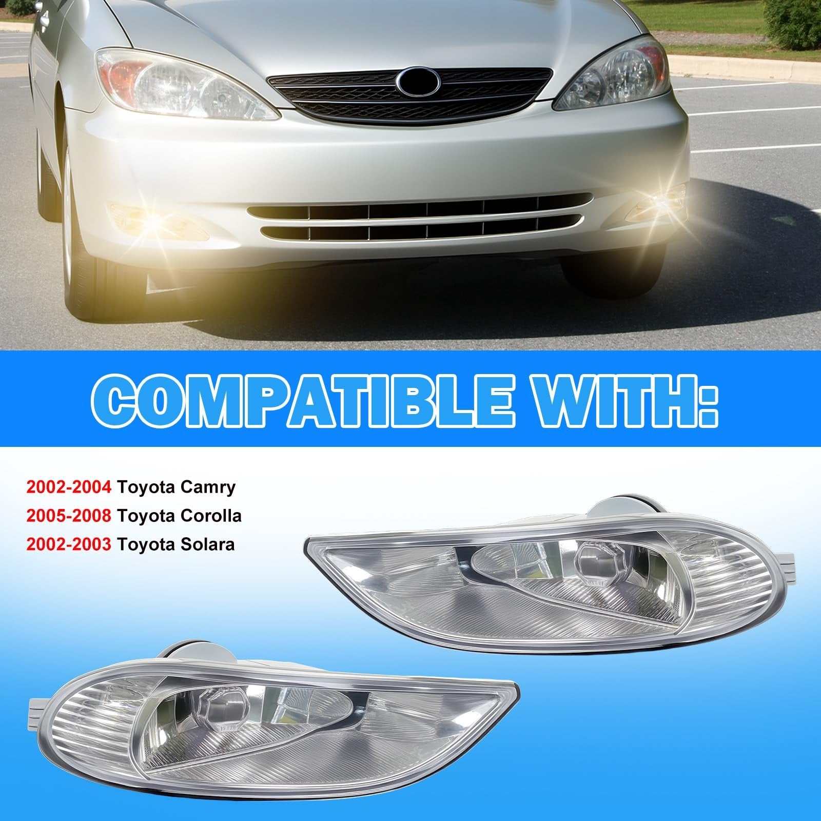 Fog Lights for 02-04 Camry, 05-08 Corolla, 02-03 Solara - Clear Lens Kit