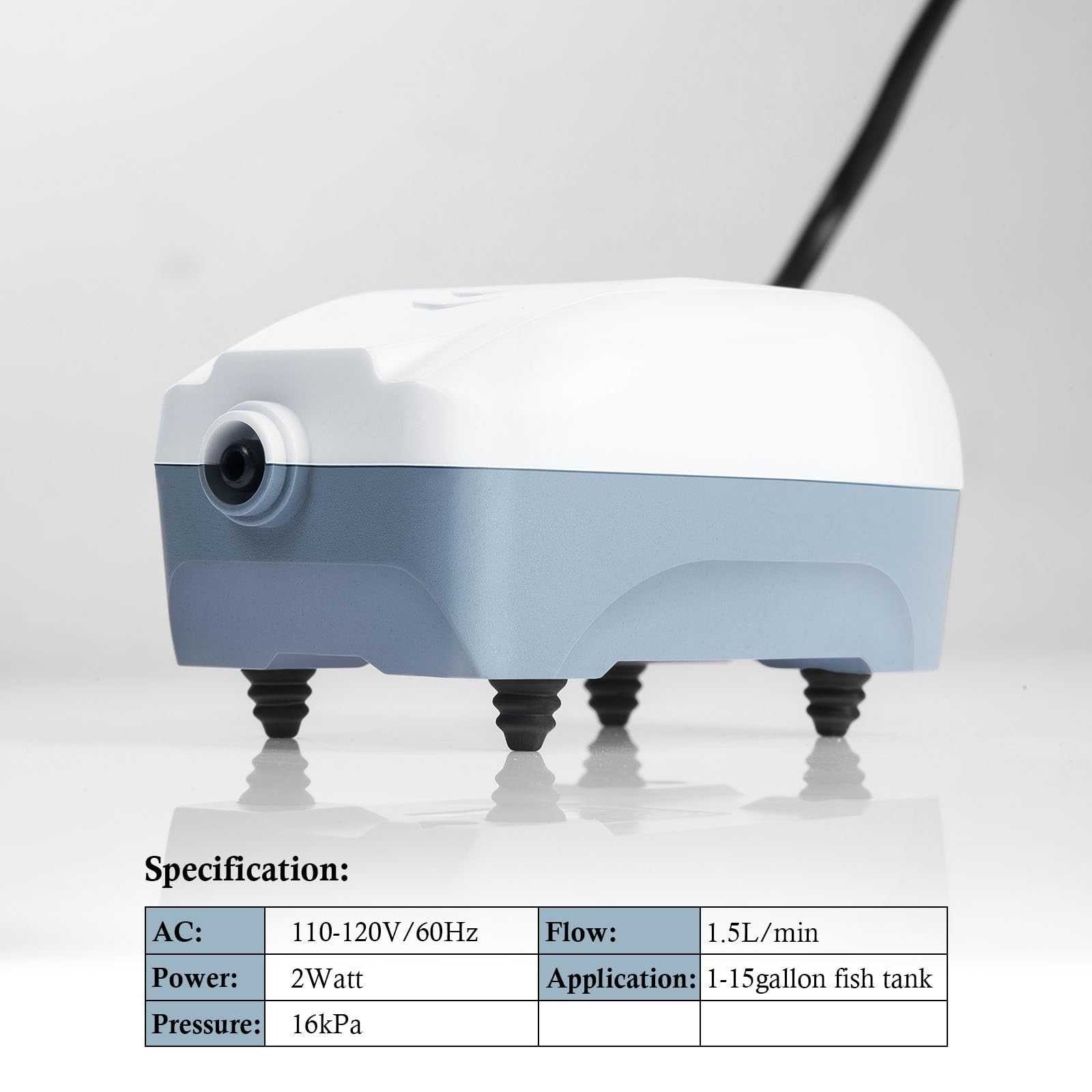 HITOP 2W Single Outlet Aquarium Air Pump Fish Tank Aerator 1.5L/Min Quiet Oxygen