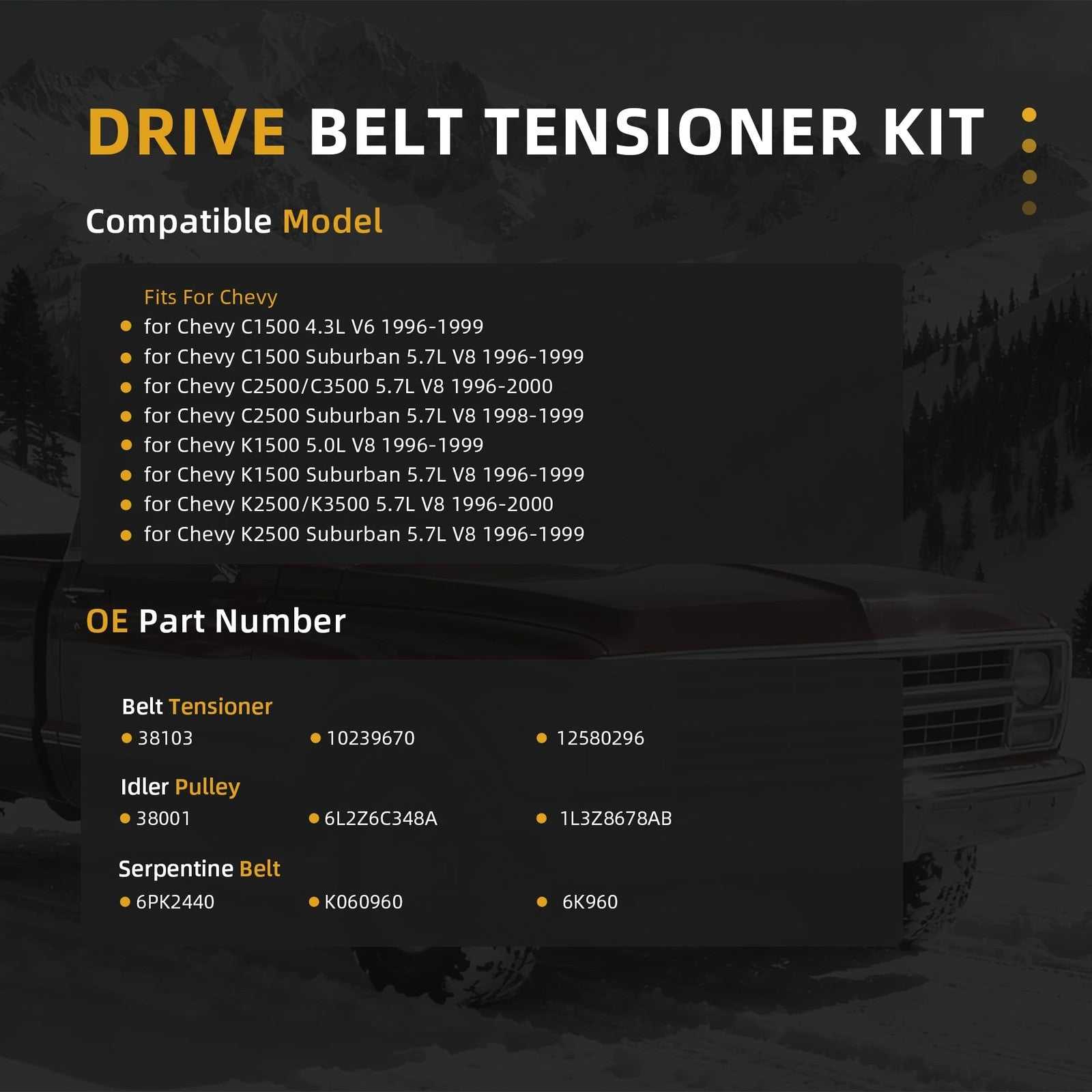 JAVOUKA Serpentine Belt Drive Kit Chevy C1500 C2500 K1500 96-99 4.3L 5.0L
