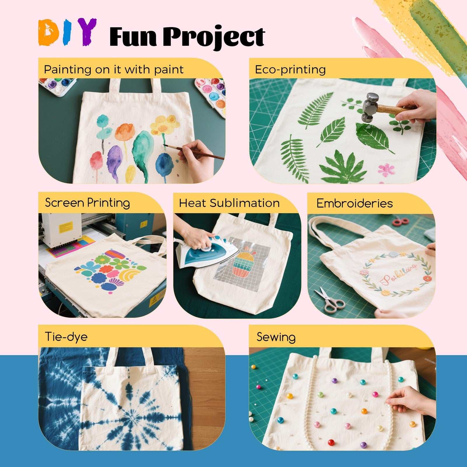 Joyclub 40-Piece Sublimation Blanks Canvas Tote Bags Bulk Polyester Reusable