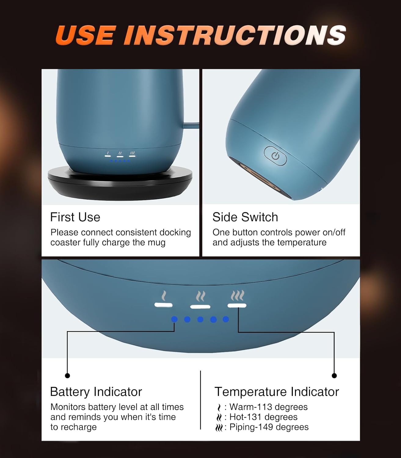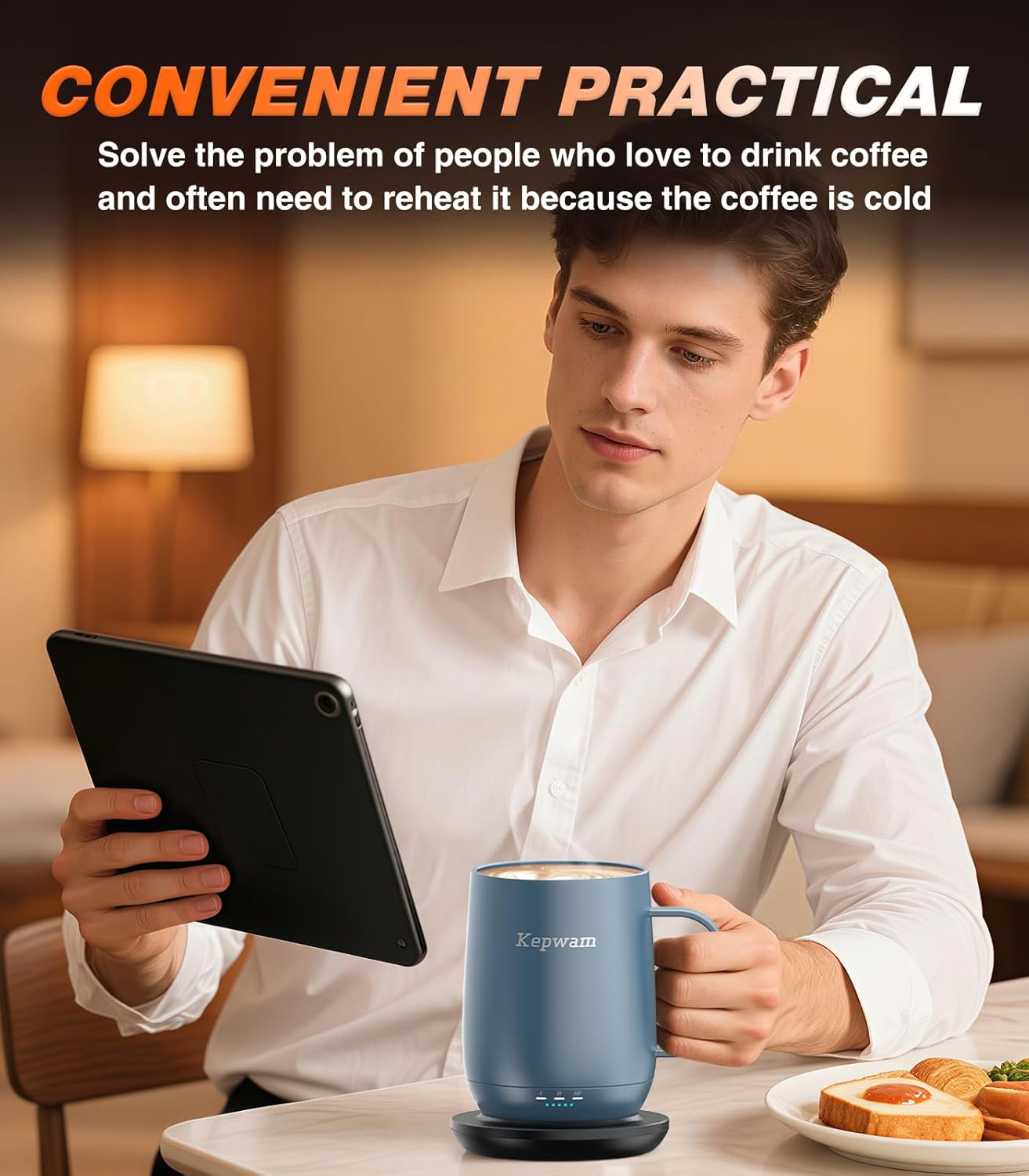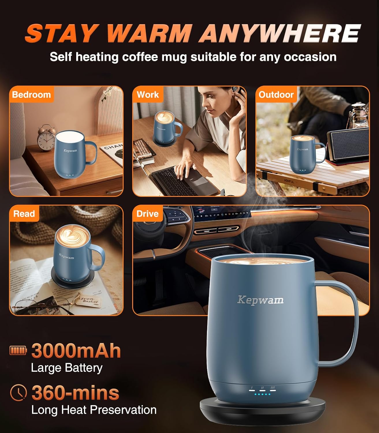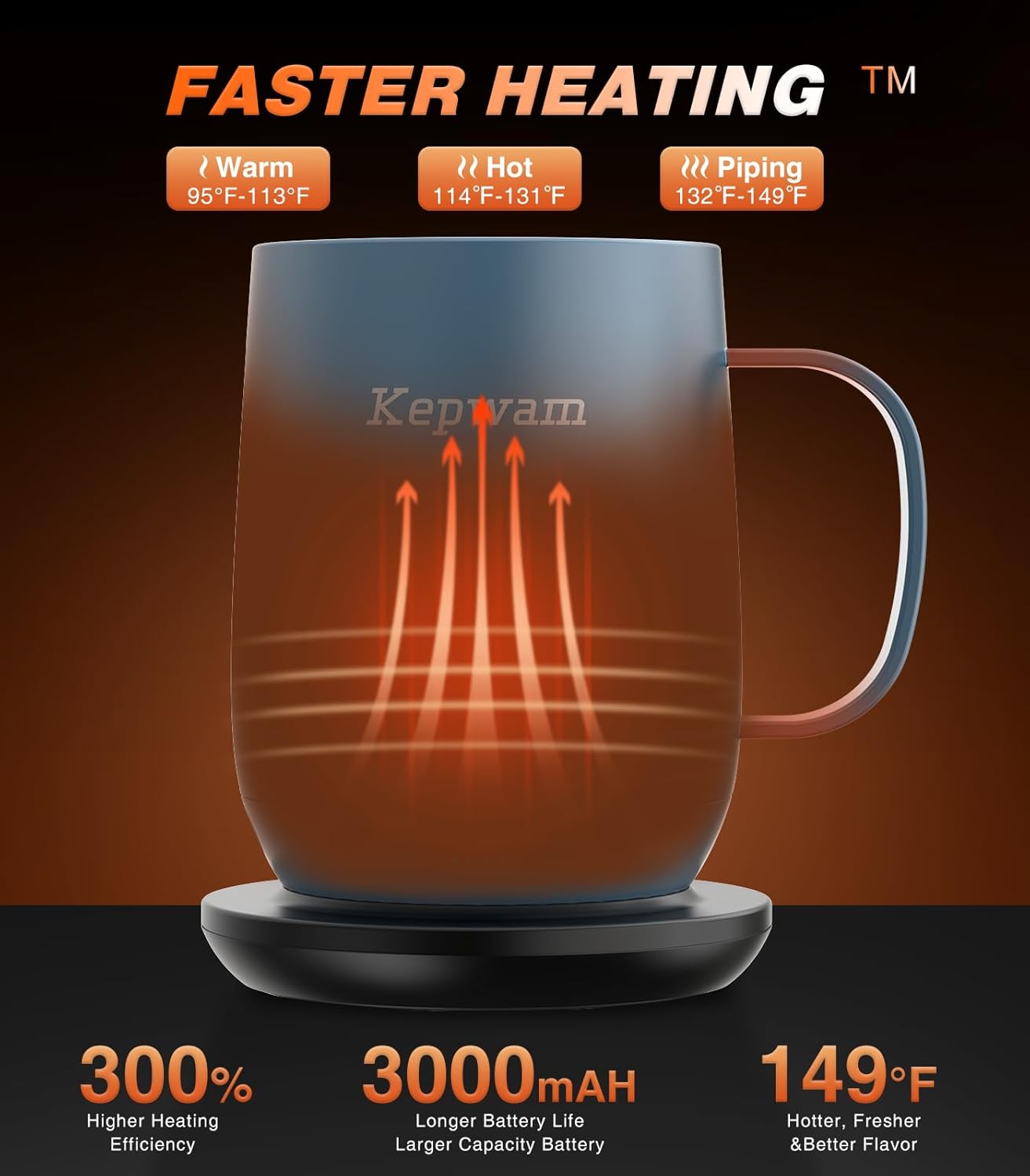 Kepwam Self Heating Coffee Mug T2, 16oz Smart Heated Coffee Mug, 150 Min Battery