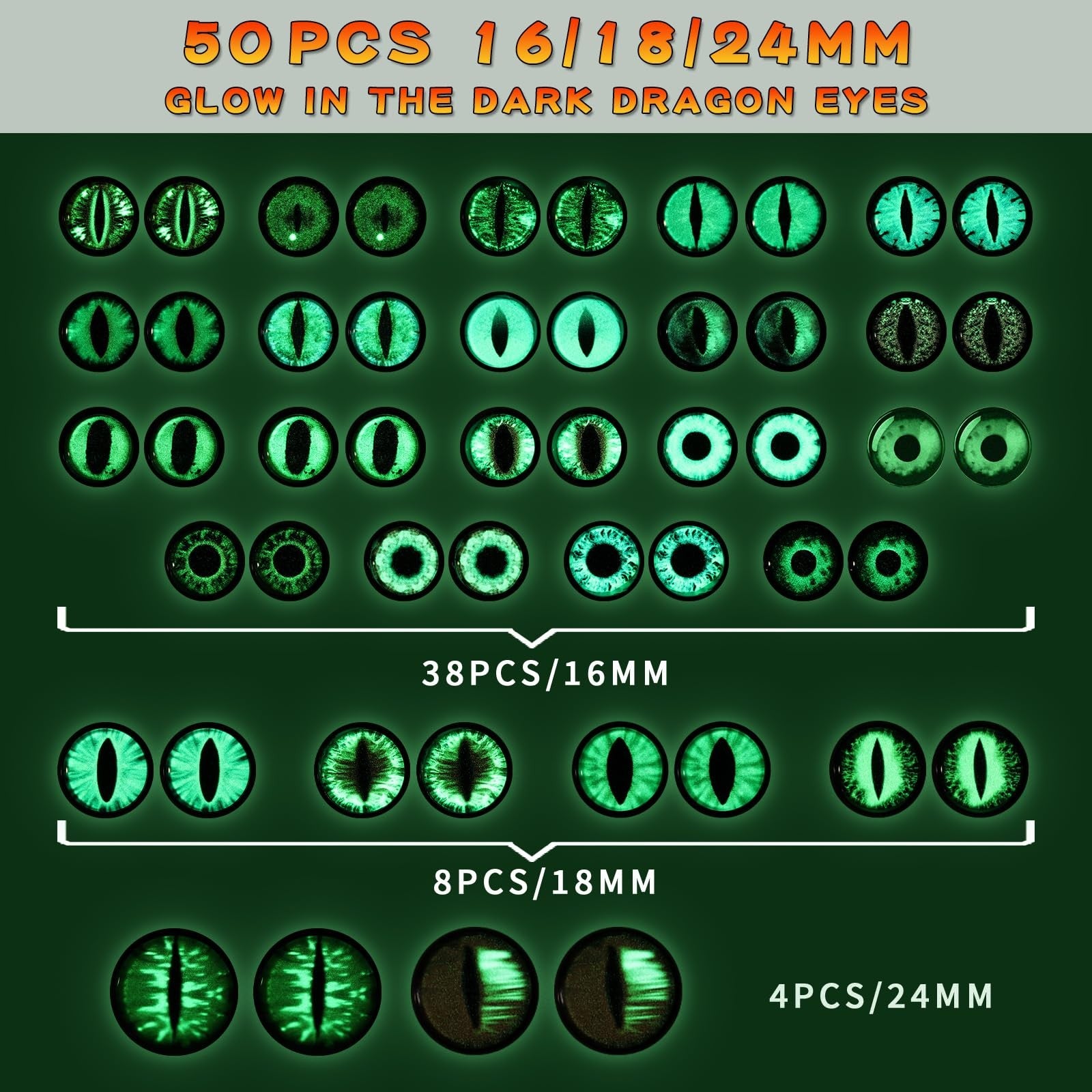 MUCUNNIA 50pcs Glow in Dark Safety Eyes Amigurumi w/ Washers 16-24mm