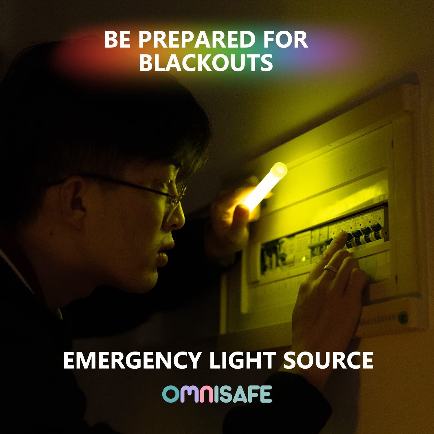 OMNISAFE 48 Ultra Bright Large Glow Sticks w/String, Multi-Use, 10+ Hrs Glow