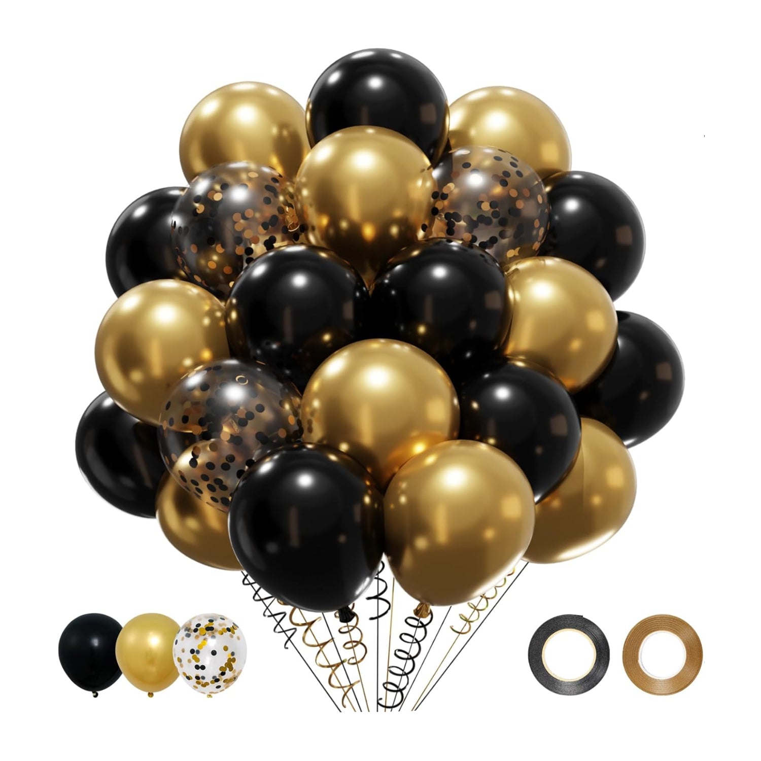 Patimate Black Gold Confetti Balloons Set, 50 pcs 12 inch Metallic Gold Black