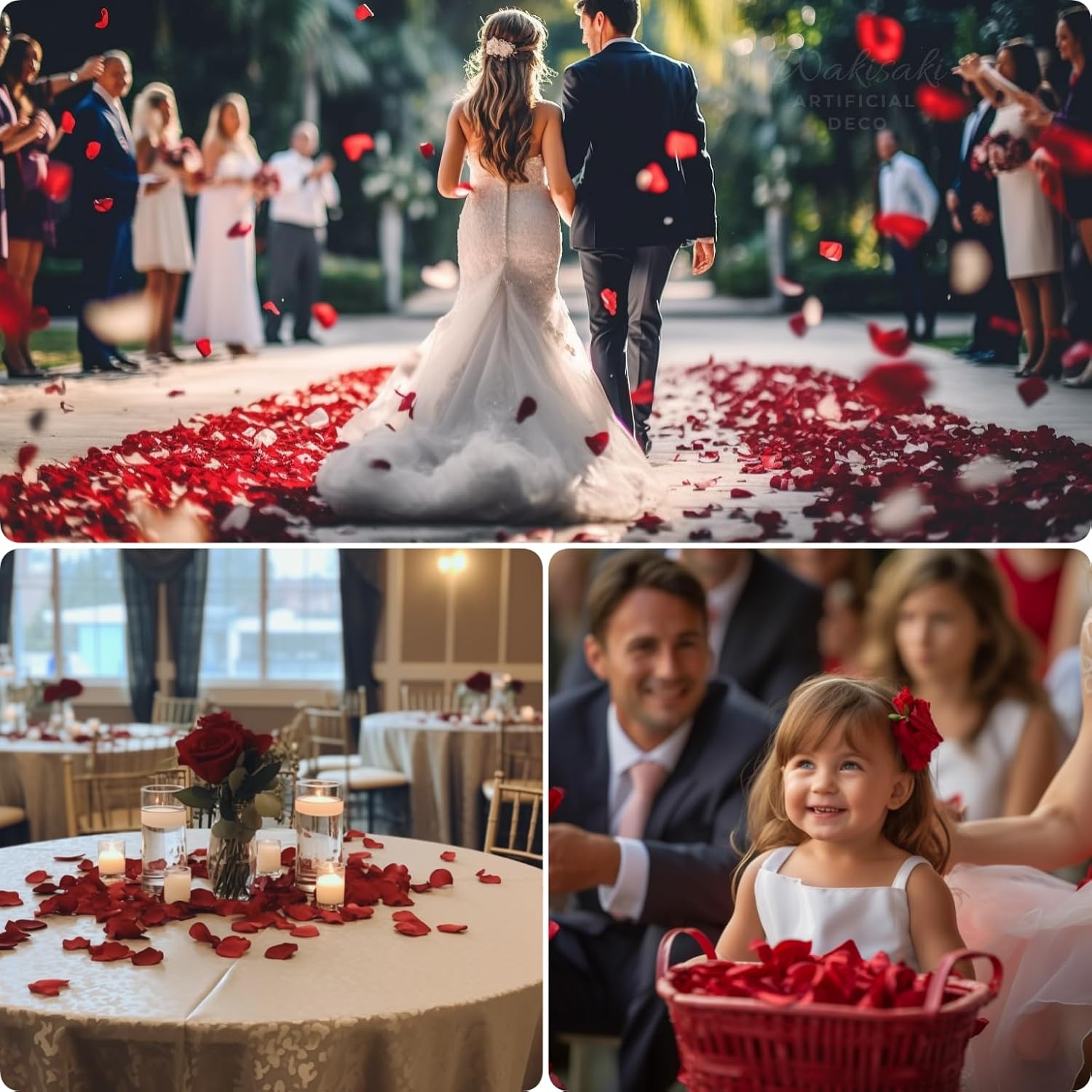 Top-grade Polyester Silk SMELLS GOOD: You will LOVE these fake rose petals because they smell like fresh rose petals! Our unique manufacturing process prevents such beautiful rose pedals from having any unpleasant odor. READY-TO-USE: These red rose pedals have been hand-separated and are ready-to-use. SAVED you HOURS to peel apart a thousand petals. Good for last-minute usage. The WAKISAKI artificial rose petals are NOT the unseparated flower petals of most other brands. HIGHLY PORTABLE: You can easily put it in your handbag or the car glove-box. It’s compactly packaged and about the size of a foldable umbrella. Great for surprise planning. Other brands of silk rose petals, after you take the efforts to peel them apart, will need a large bag for the loose rose peddles. You definitely want to avoid carrying that around. WYSIWYG: You get the exact SAME COLOR as you see. The details photo was taken from actual products; The 30% EXTRA THICKNESS of the material makes each petal look and feel more lifelike than its rivals. MORE THAN ENOUGH: Petal size 2" by 2" just like the fresh flower petals. One thousand WAKISAKI petals cover about 25 square feet if spread evenly and are sufficient in most party-of-2 scenarios. They are ideal rose petals for romantic night for him set or her, wedding flower girl petal, proposal decorations, anniversary, or simply as red table decor, rosas artificiales para decoracion. Feel free to buy more to use in larger events such as wedding, ceremony, party, decoration, etc.