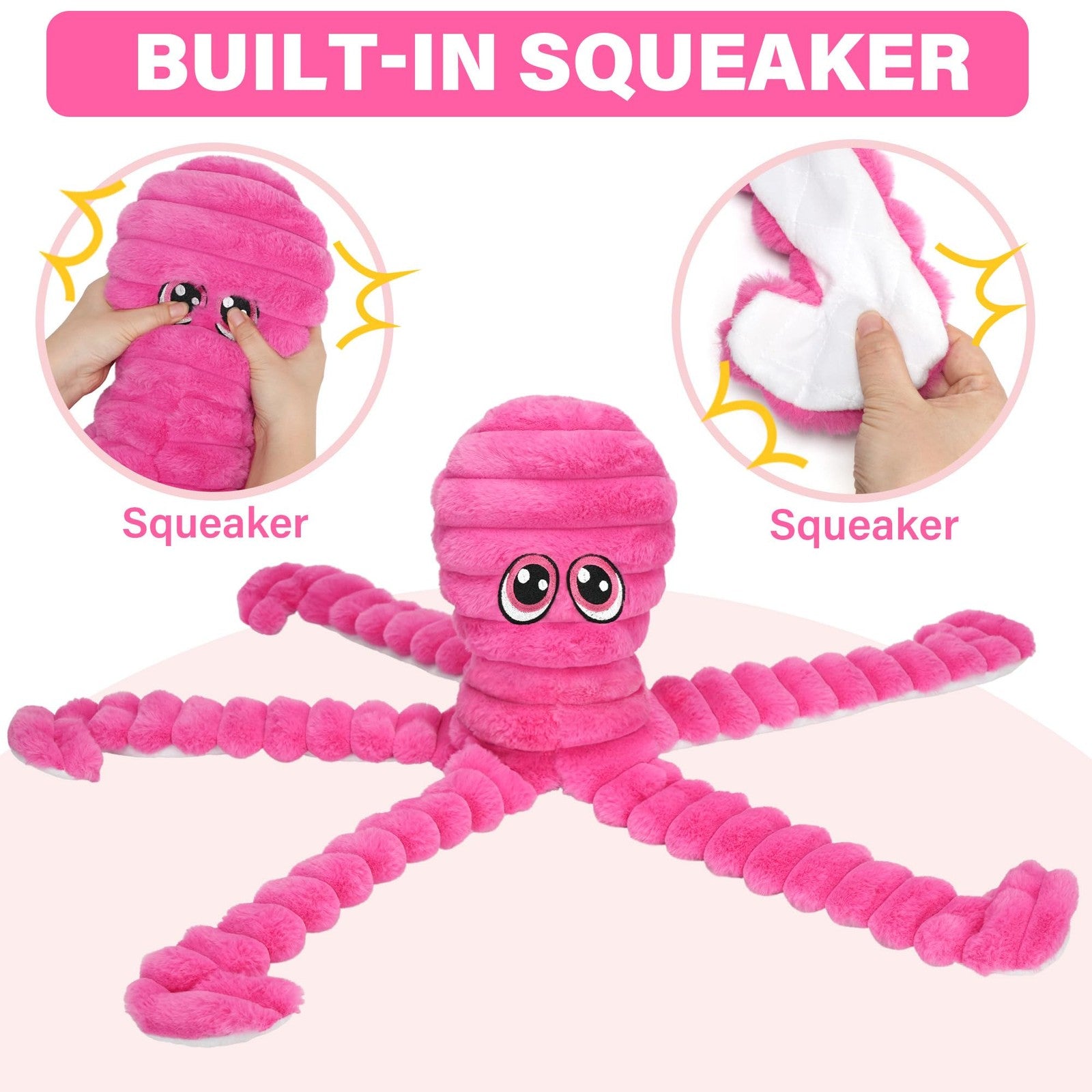 Prime Pets 27in Large Plush Octopus Dog Toy Squeaky Tug Pet Toy for Big Dogs