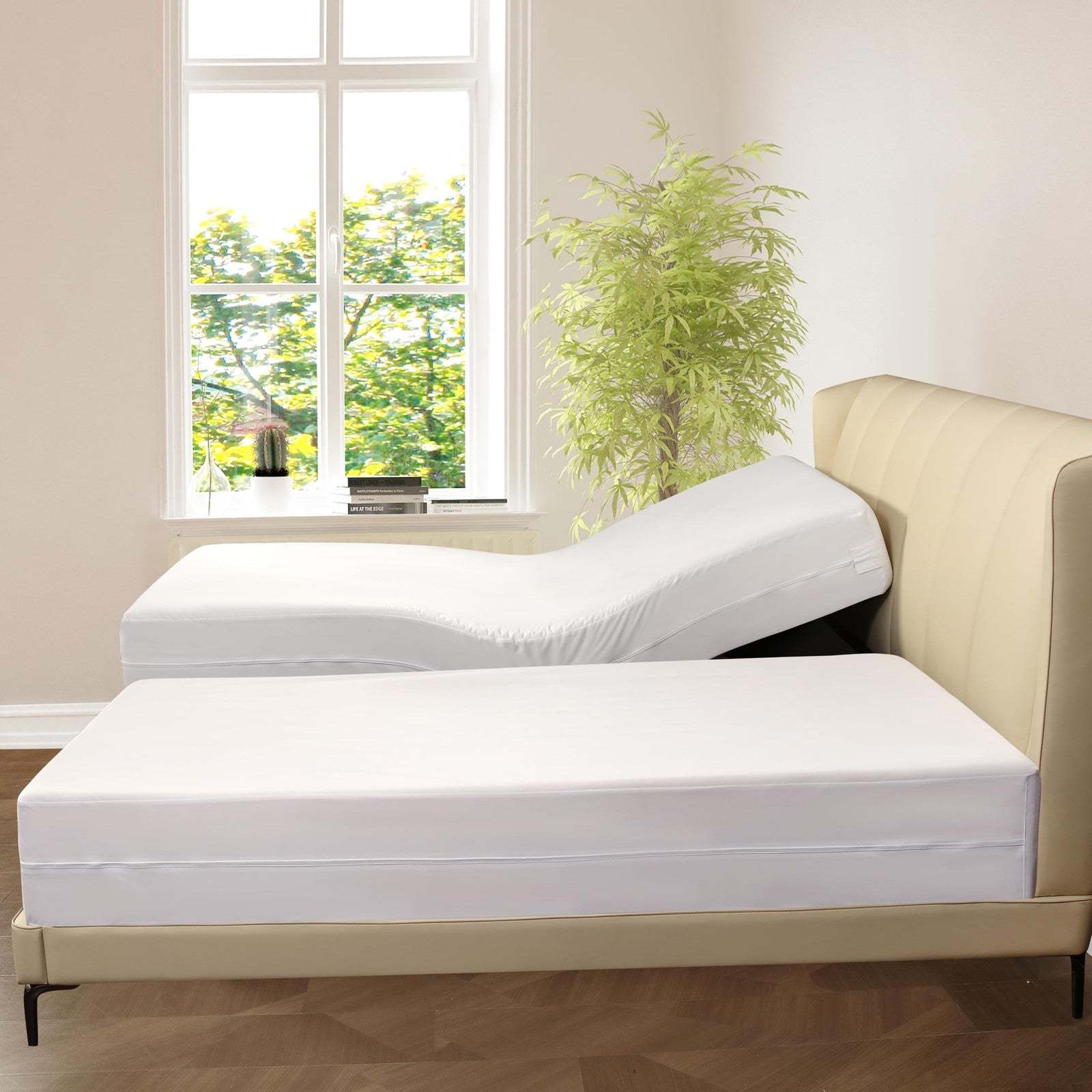 Split Queen Size Waterproof Quilted Mattress Pad Protector - Allergen Relief Bar