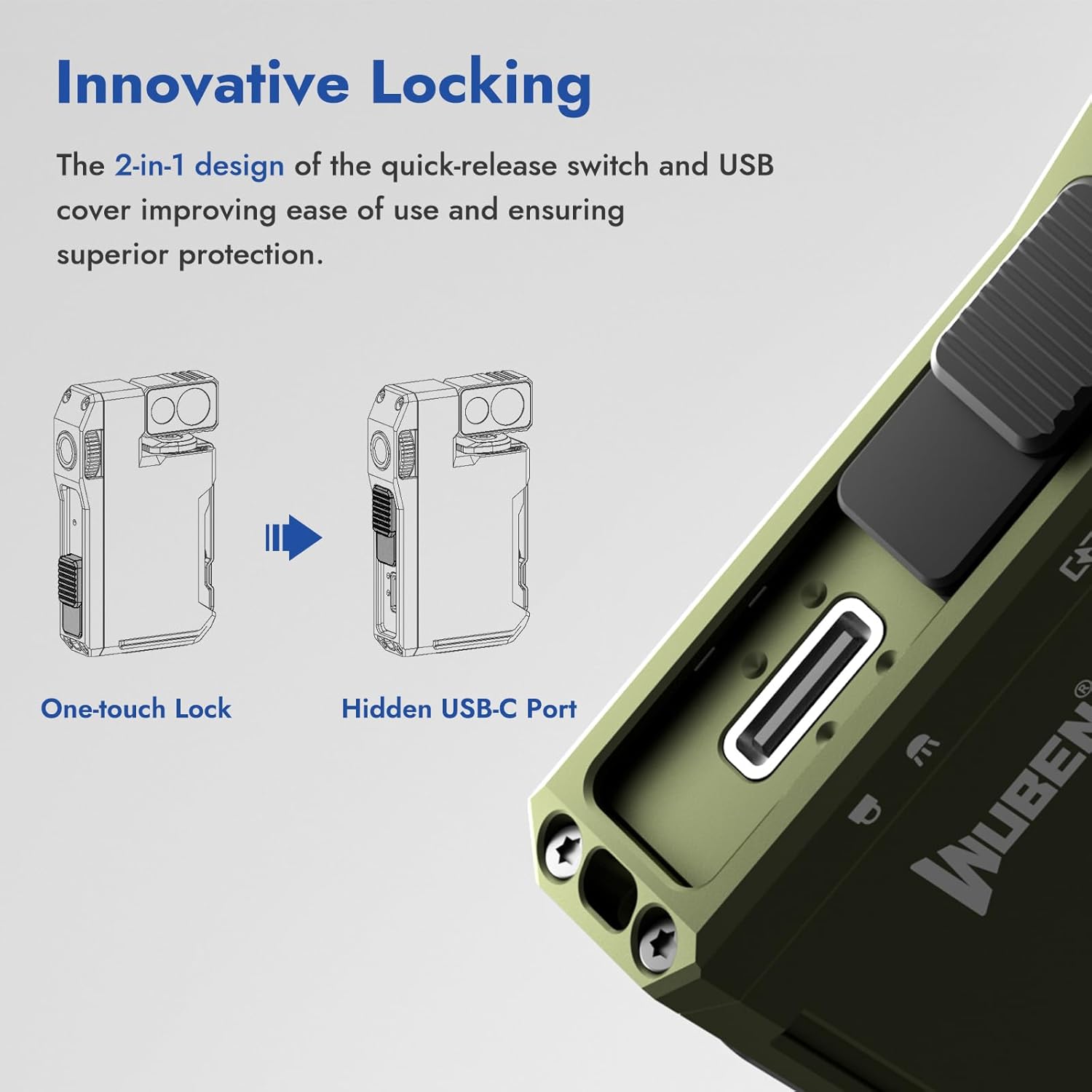 WUBEN G5 Rechargeable EDC Flashlight, Powerful RGB Flashights, 400 Lumens, Green