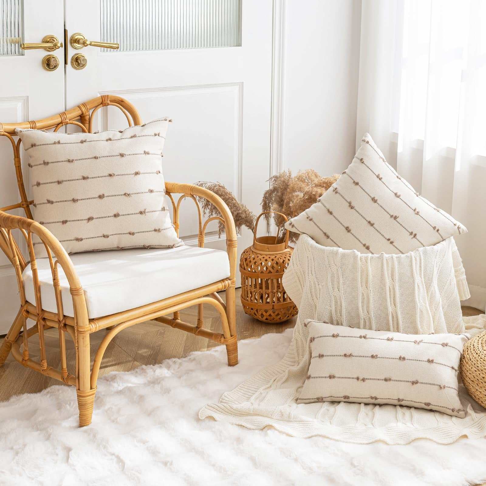 YEENAASY Boho Throw Pillow Covers 26x26 Set of 2 Modern Farmhouse Decorative Cus
