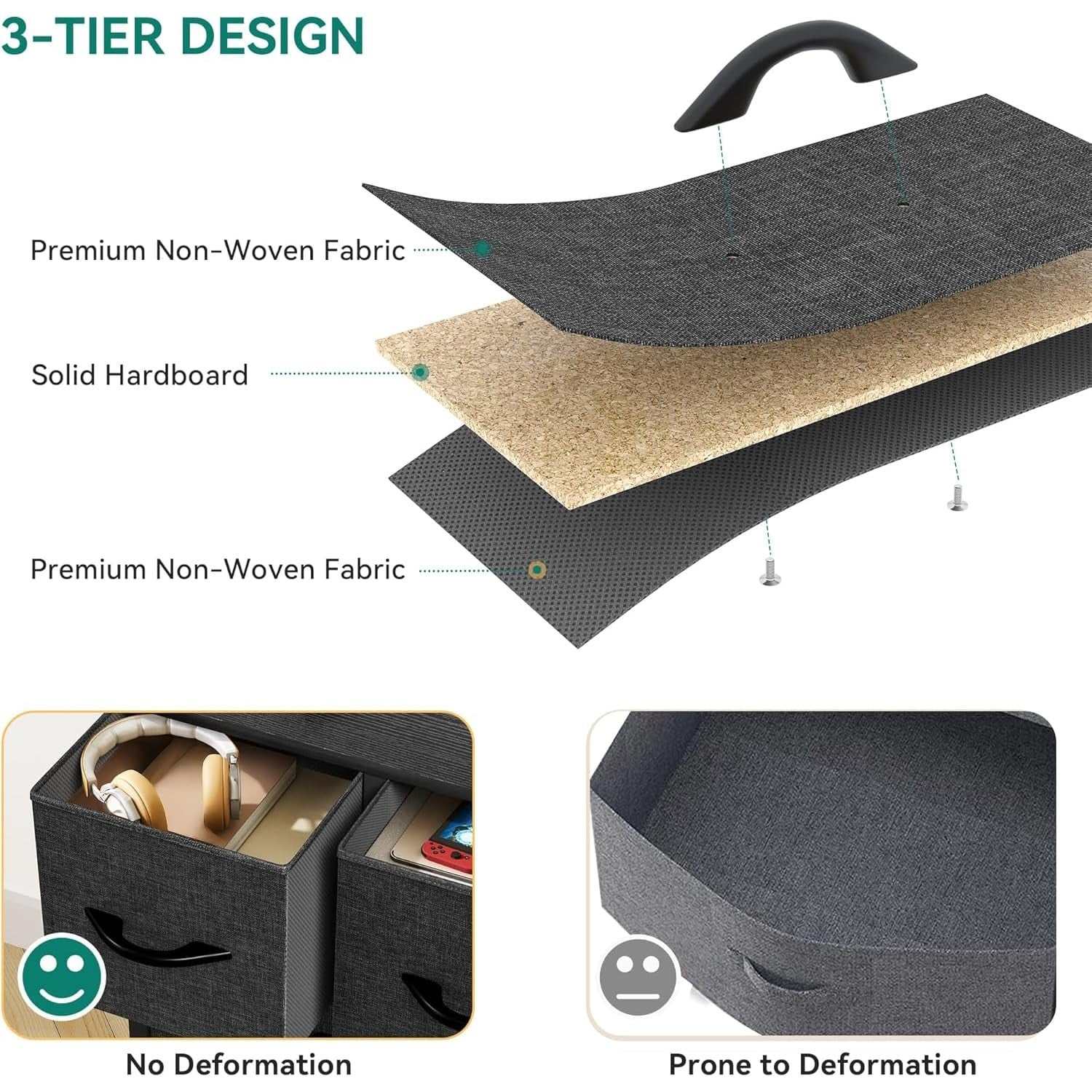 YITAHOME 5-Drawer Fabric Dresser Organizer Unit for Bedroom, Living Room, Hallwa