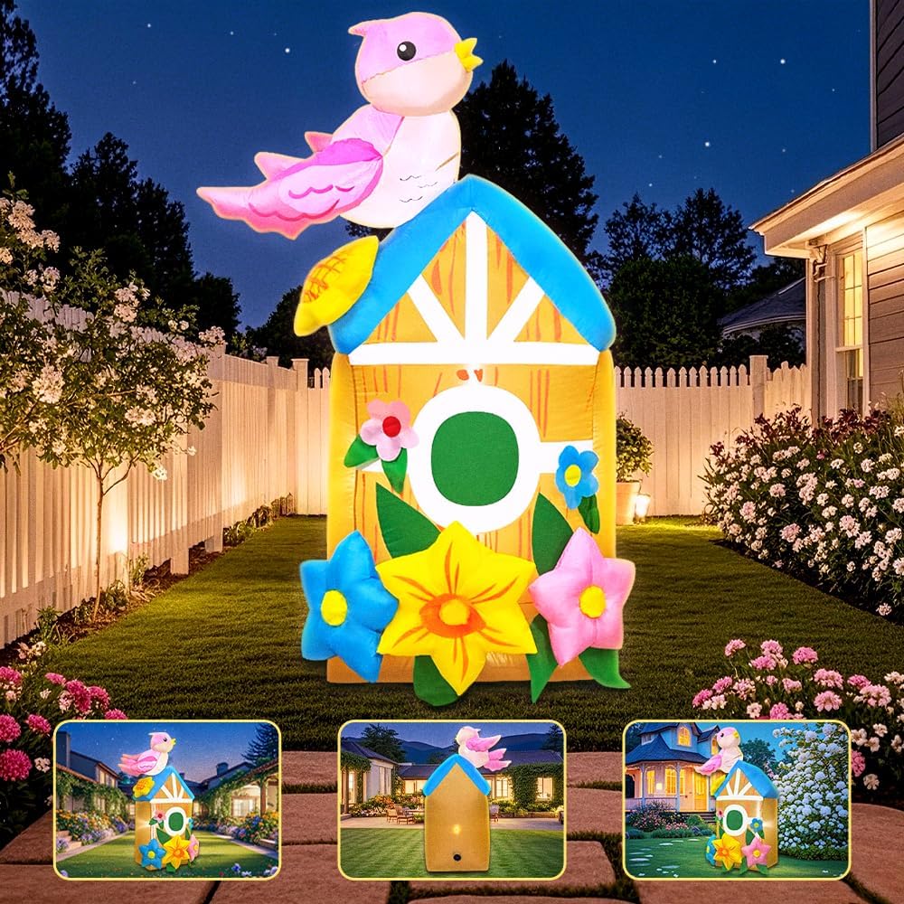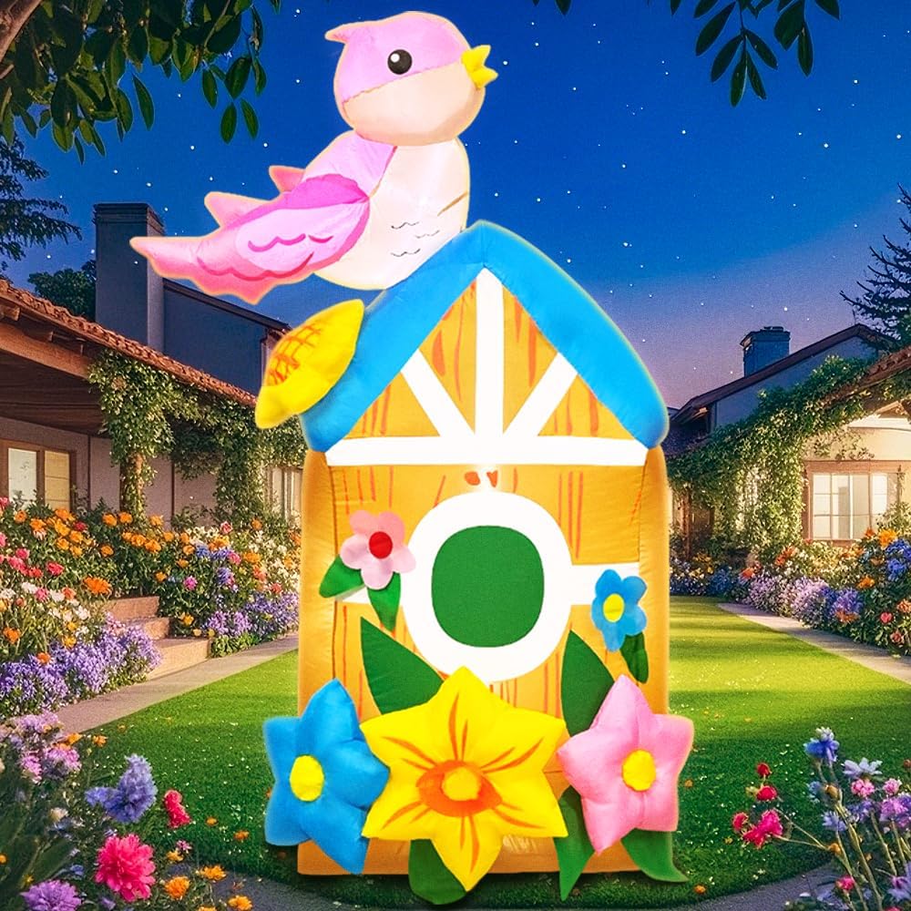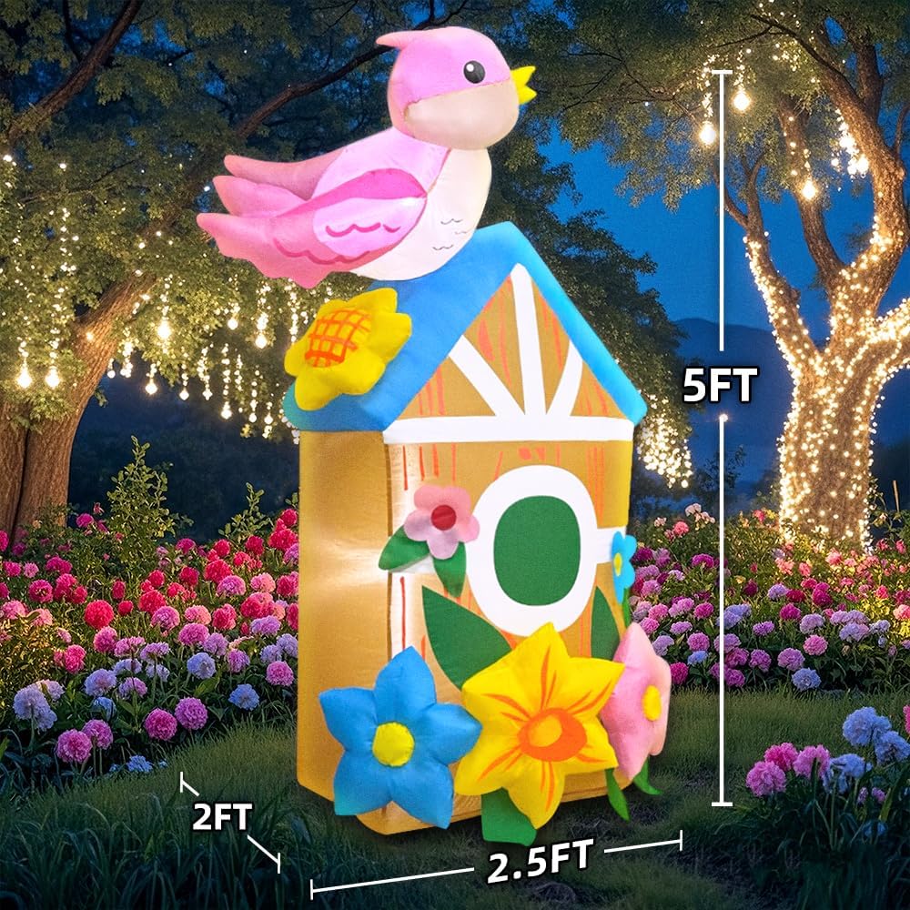 5FT Spring Inflatable Bird House Outdoor Decorations Blow up Yard Decor