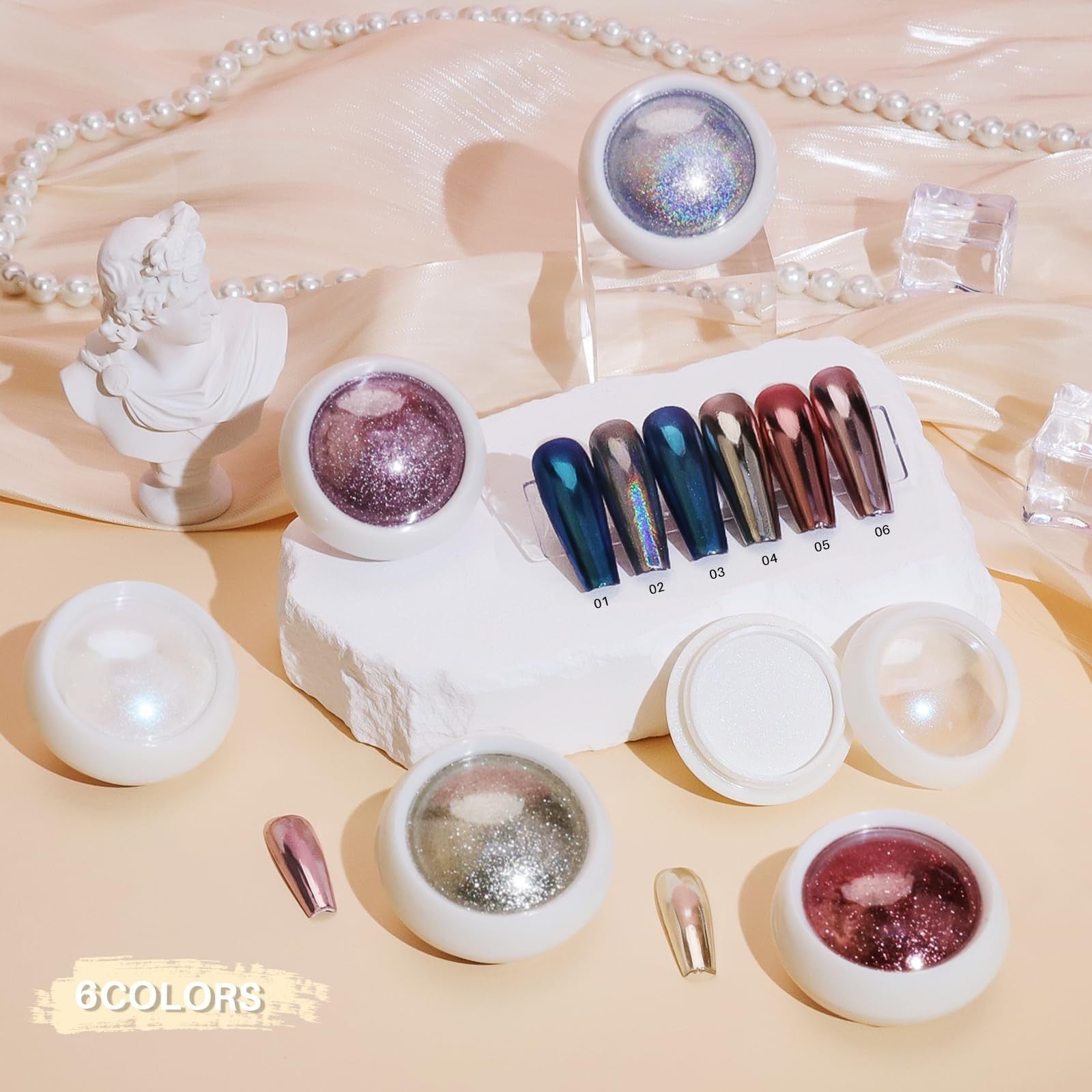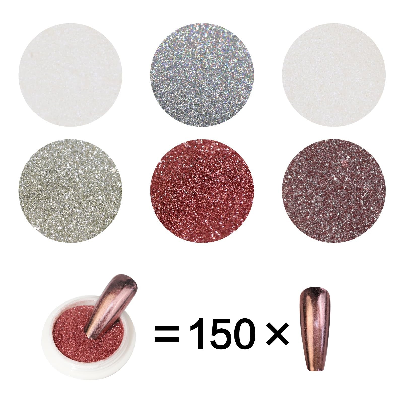 BISHENGYF 6 Pcs White Chrome Powder Pearl Effect Nail Glitter Dust Nail Powder