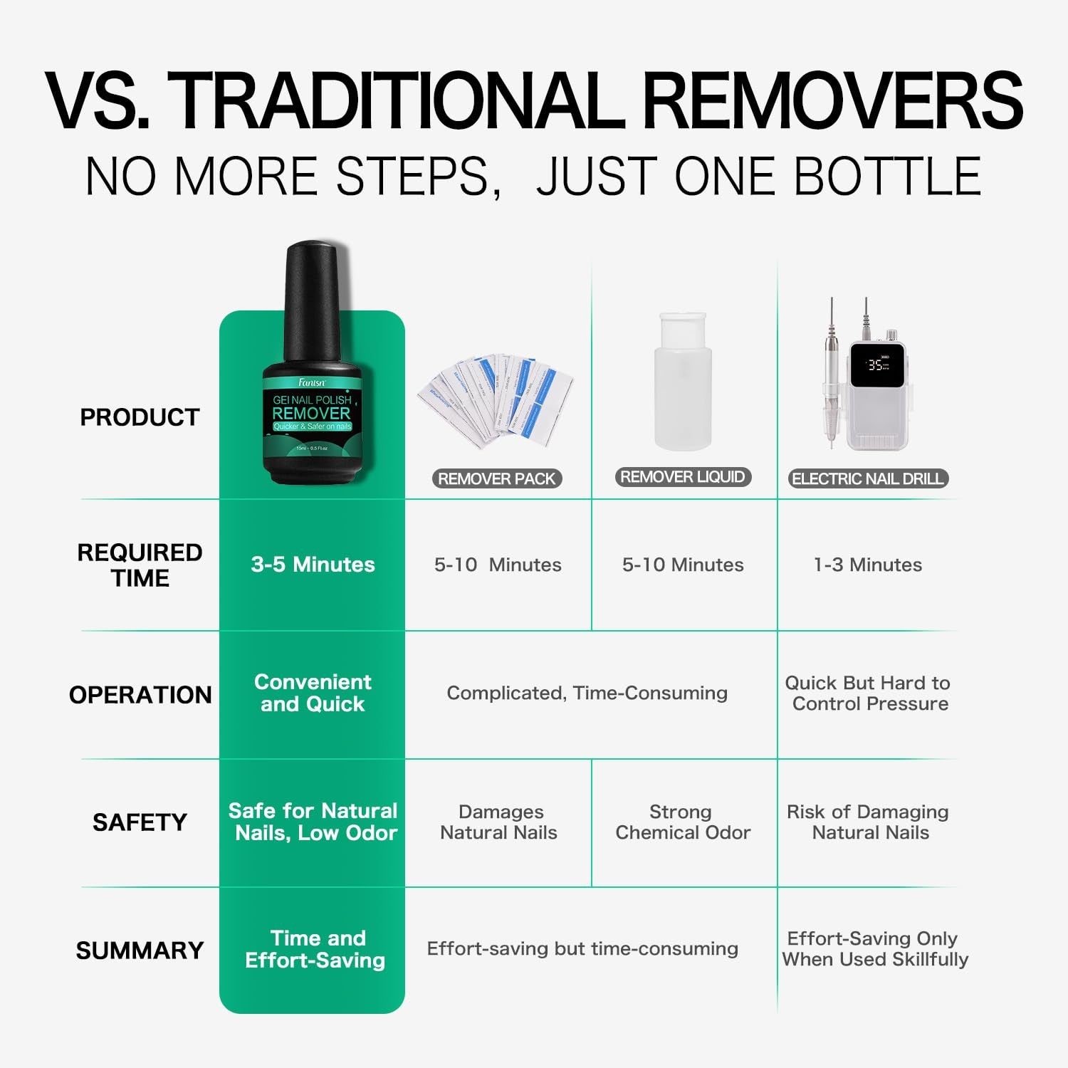 FANISN Gel Nail Polish Remover w/Tools - Acetone-Free, Fast 3-5 Min, 15ml