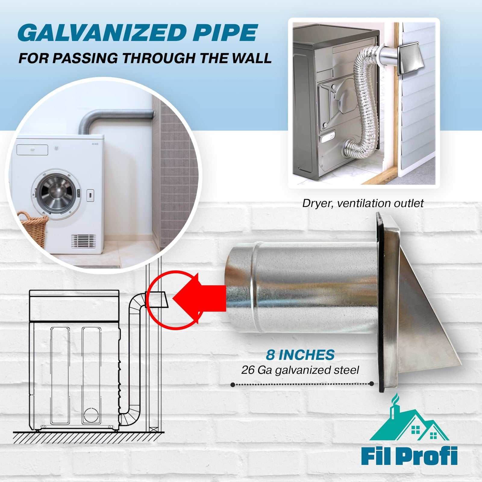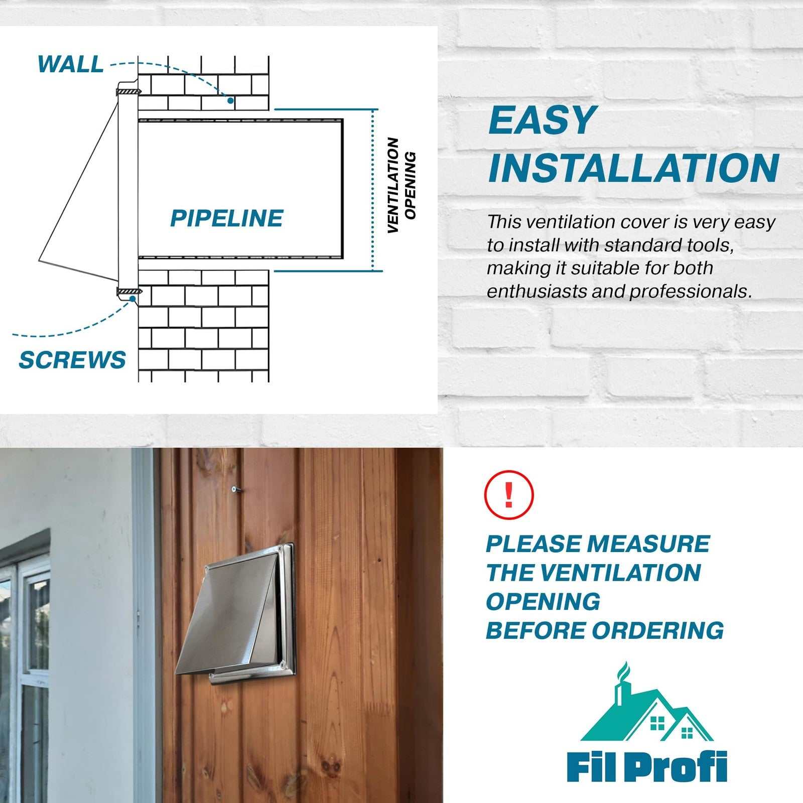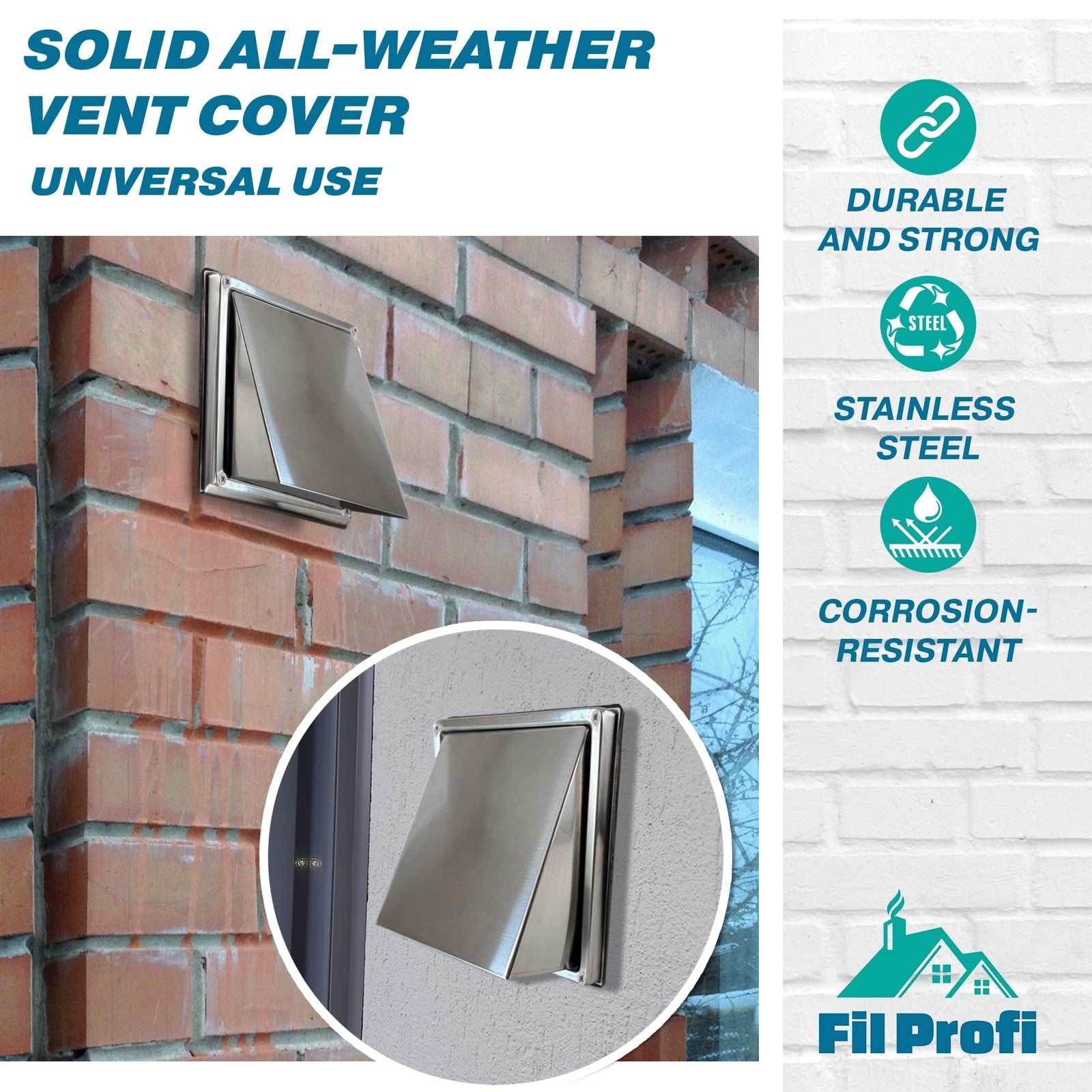 FilProfi 5" Stainless Steel Wall Vent Cover Exhaust Duct, Dryer, Kitchen Fan