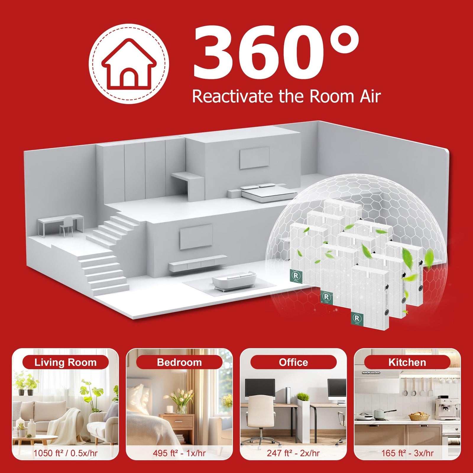 Funmit HEPA Filter R for Honeywell HPA100 HPA200 HPA300 HPA5000 Series (9 Pack)