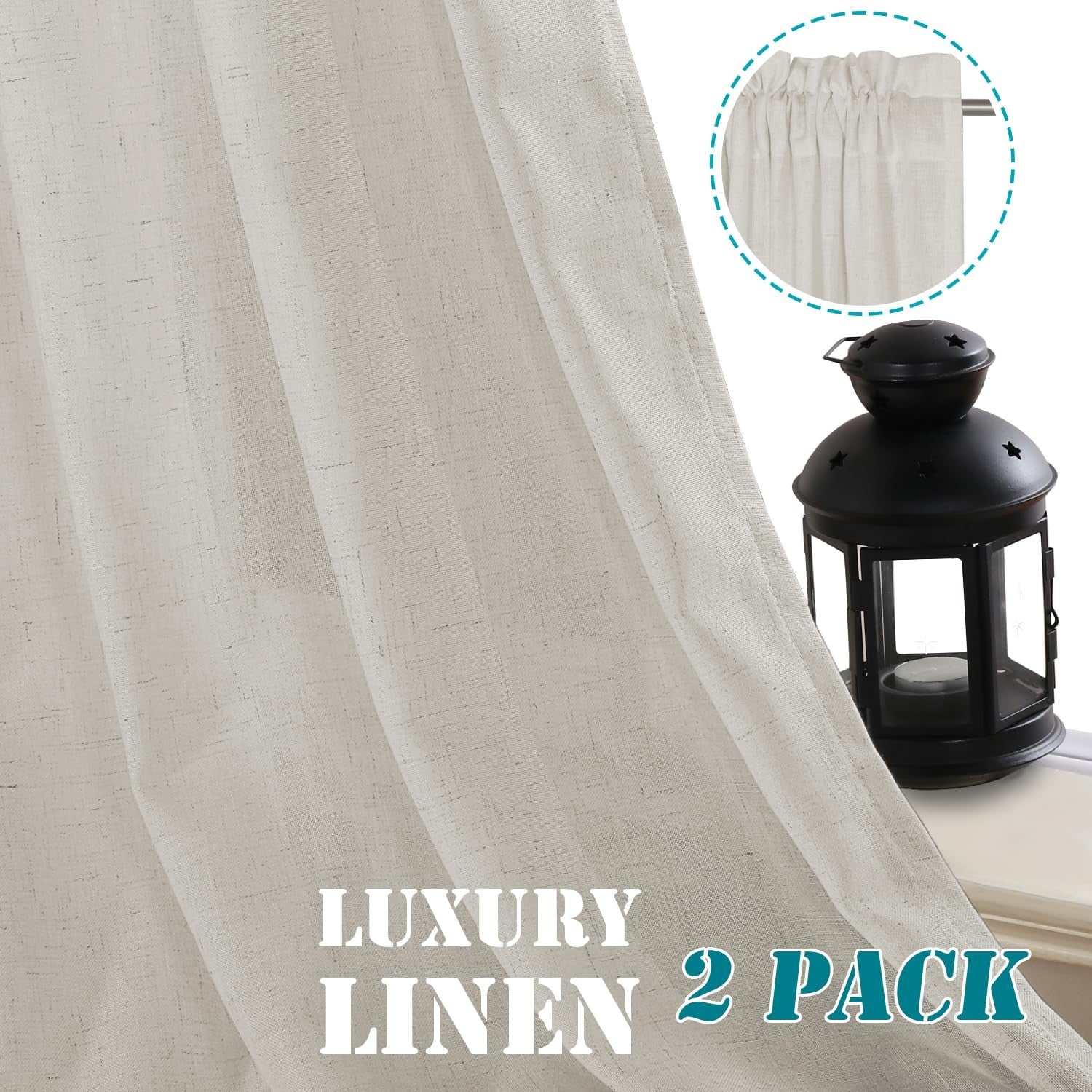 H.VERSAILTEX Linen Semi Sheer Curtains, Energy Efficient, Rod Pocket, 52"x54"