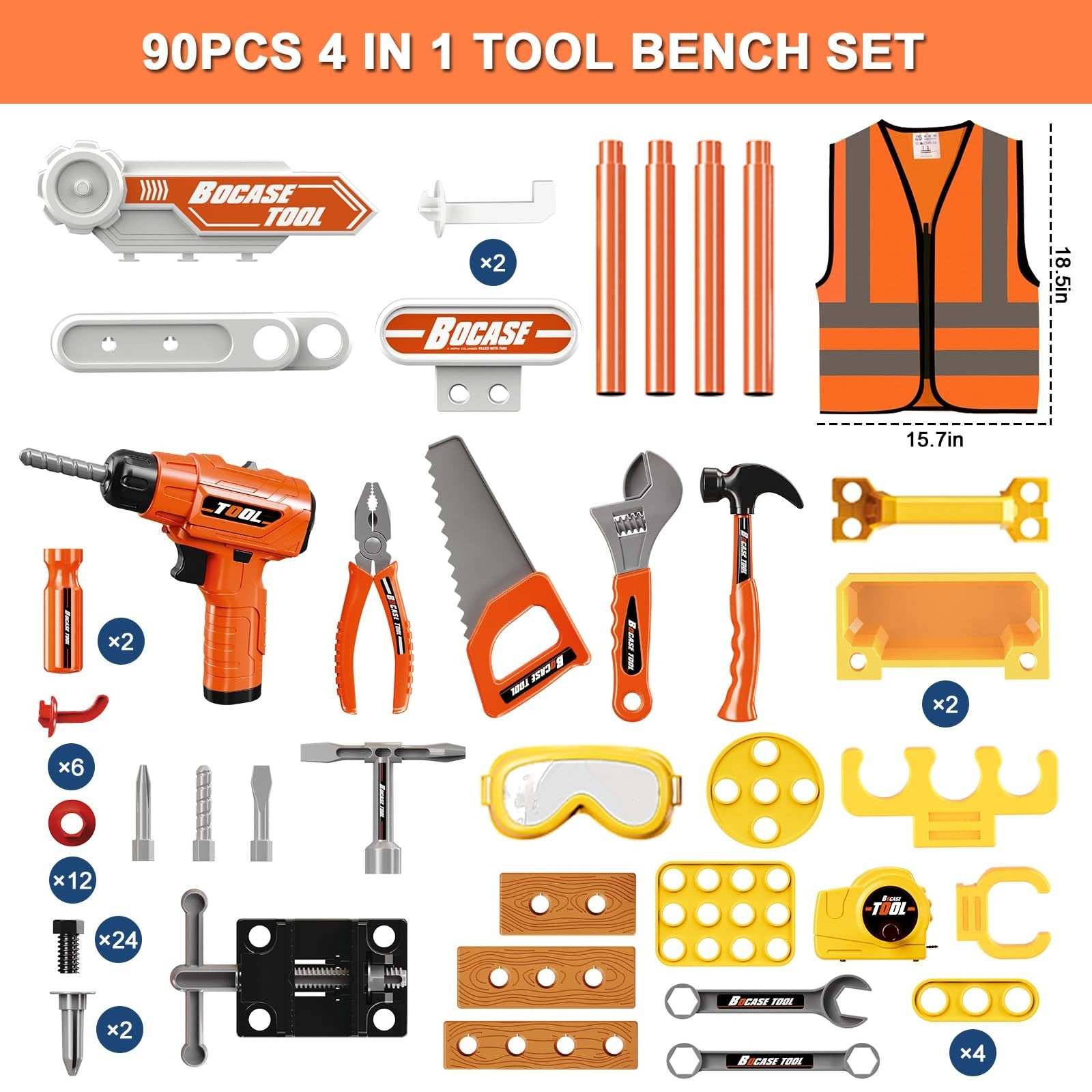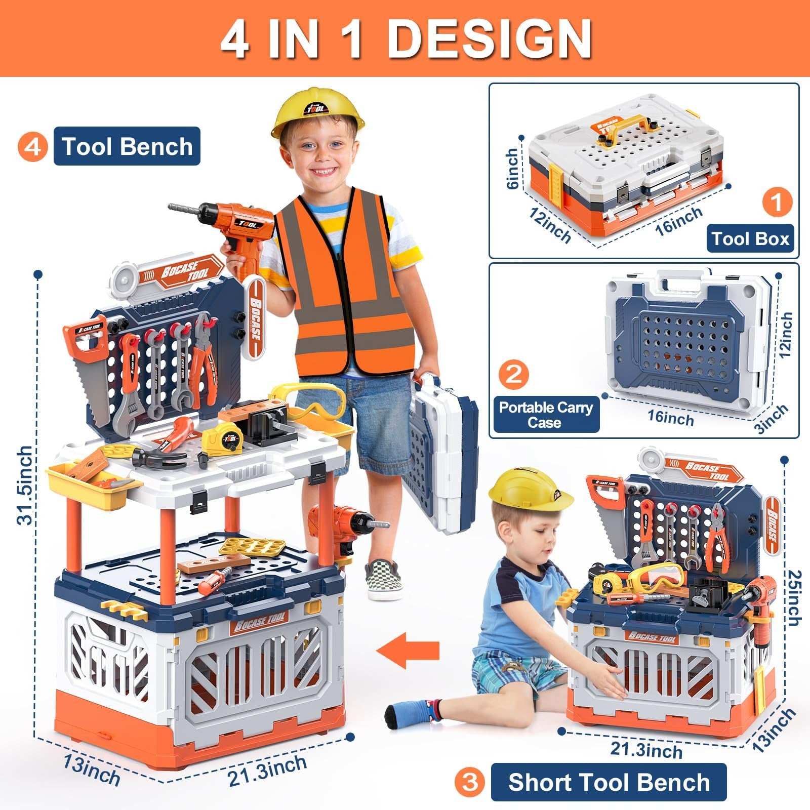 Kids Tool Bench Toy Workbench Storage Box 4-in-1 Set Electric Drill Ages 3-8