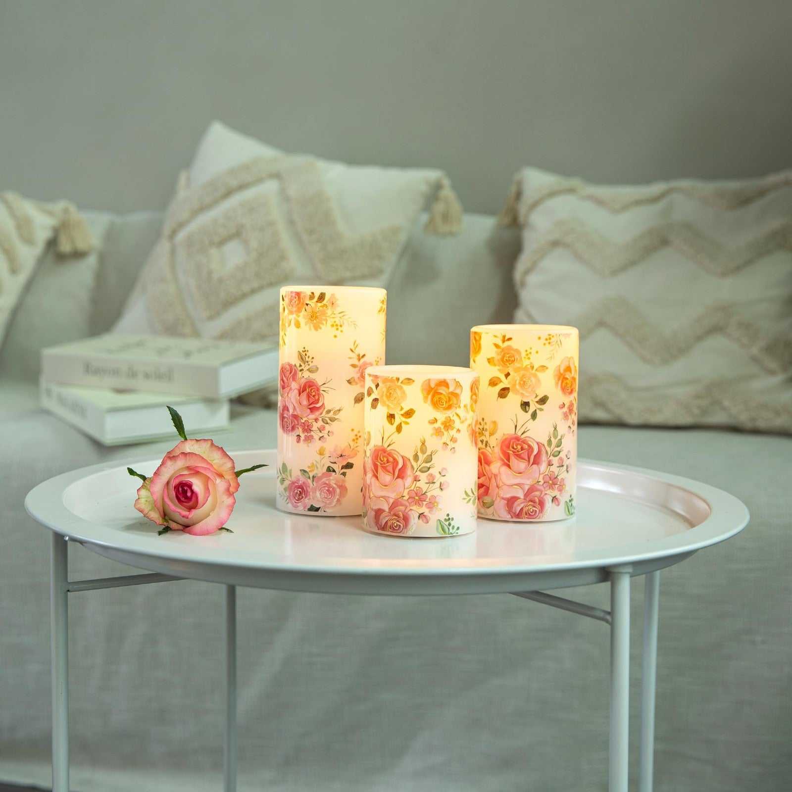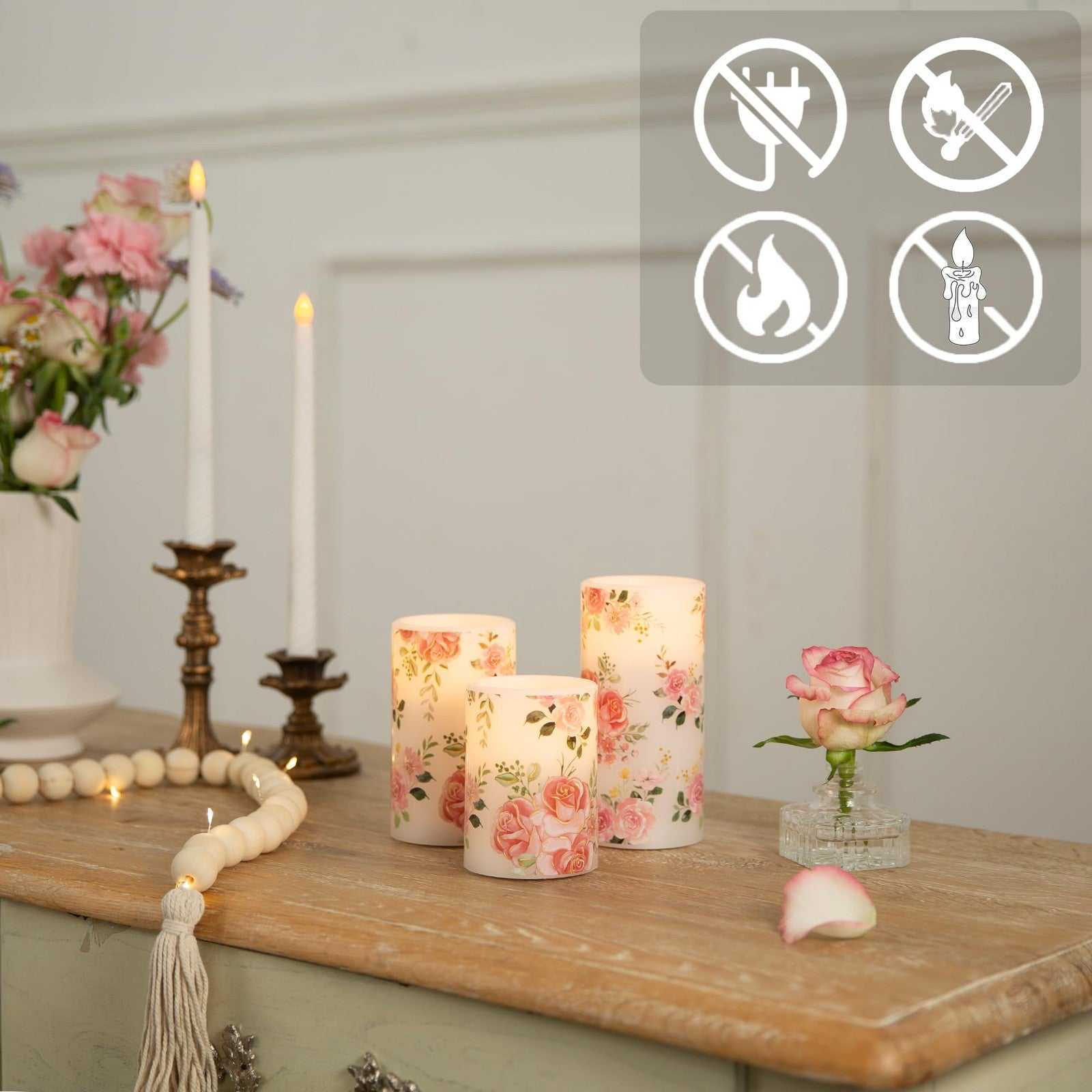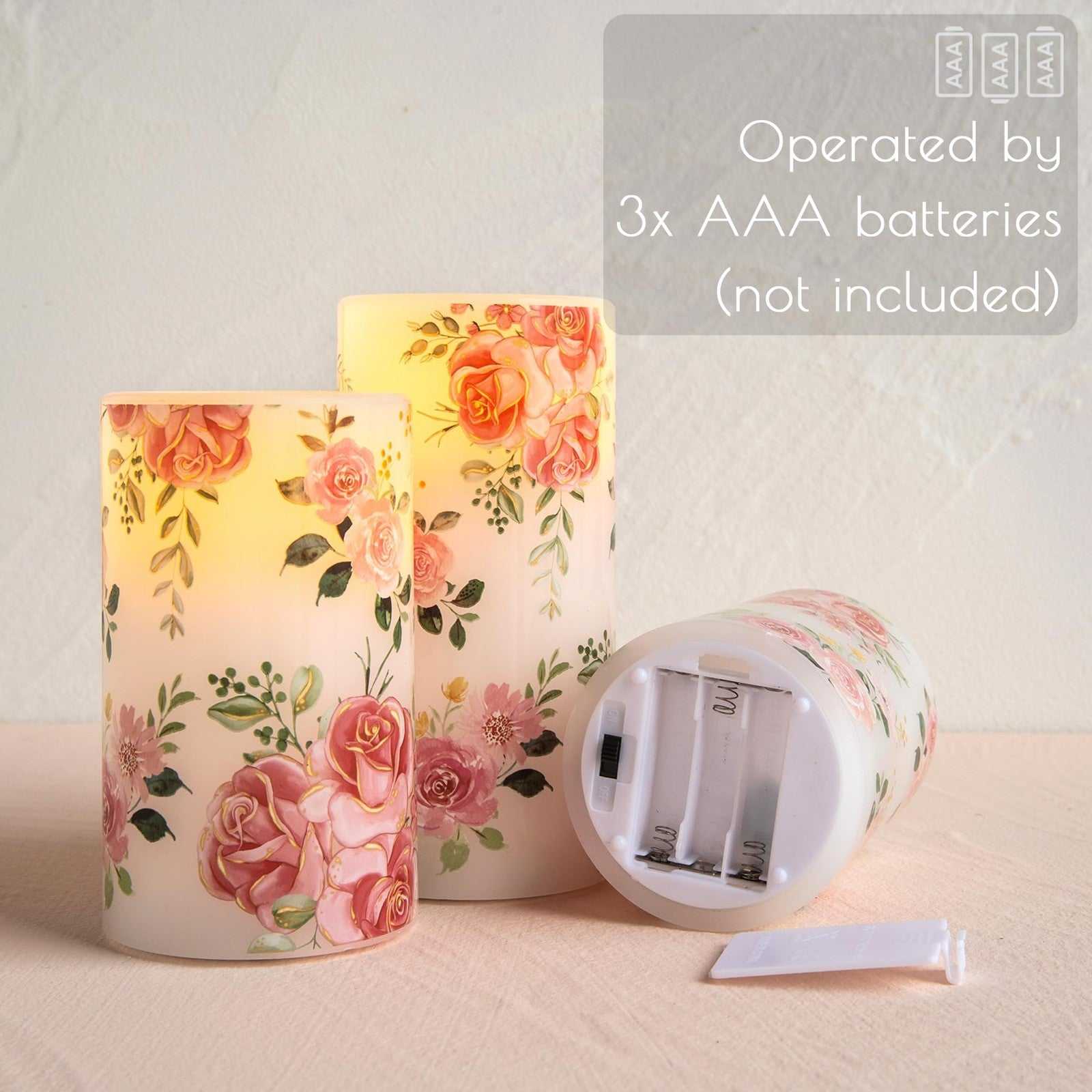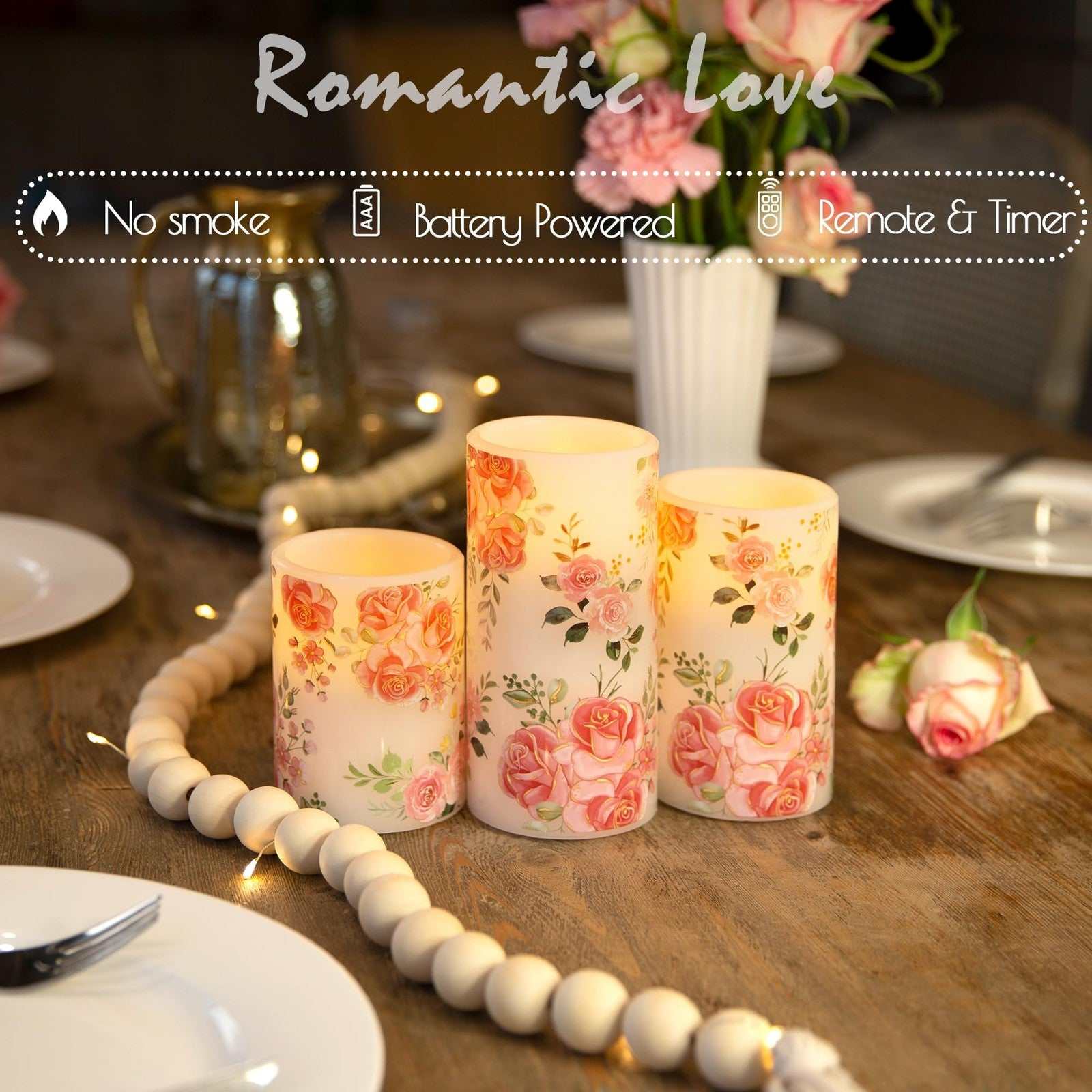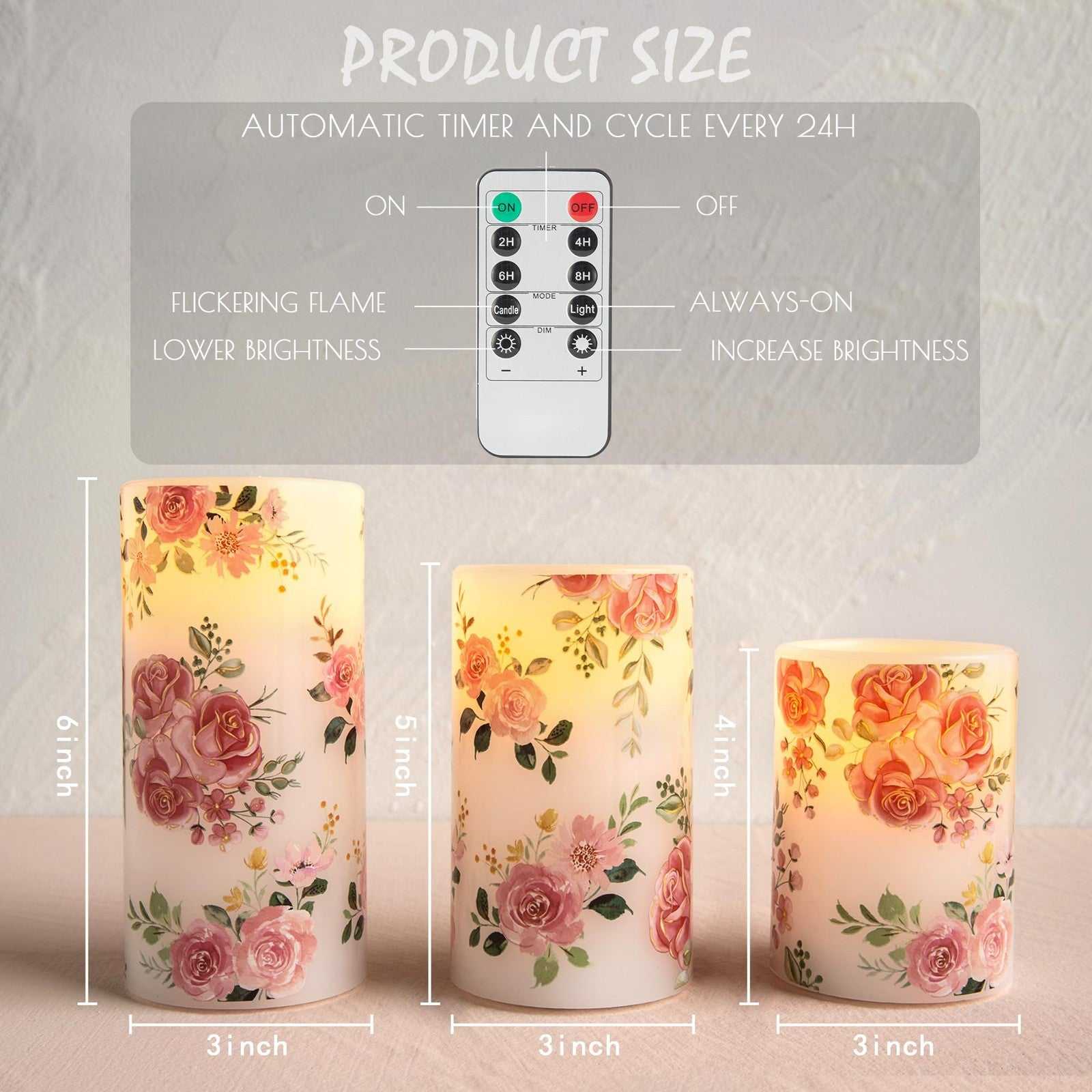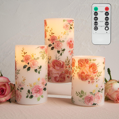 LUSHARBOR Flameless Candles w/ Remote, Real Wax, Pink, D3"xH4"5"6", Battery