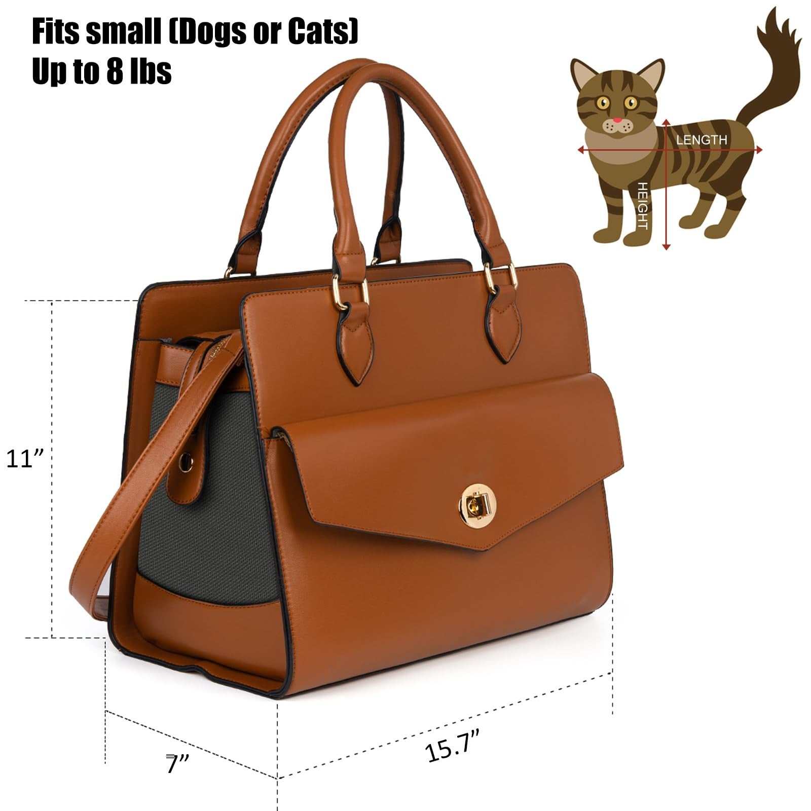Stylish Pet Carrier Purse Leather Bag for Small Dogs & Cats, Airline Approved