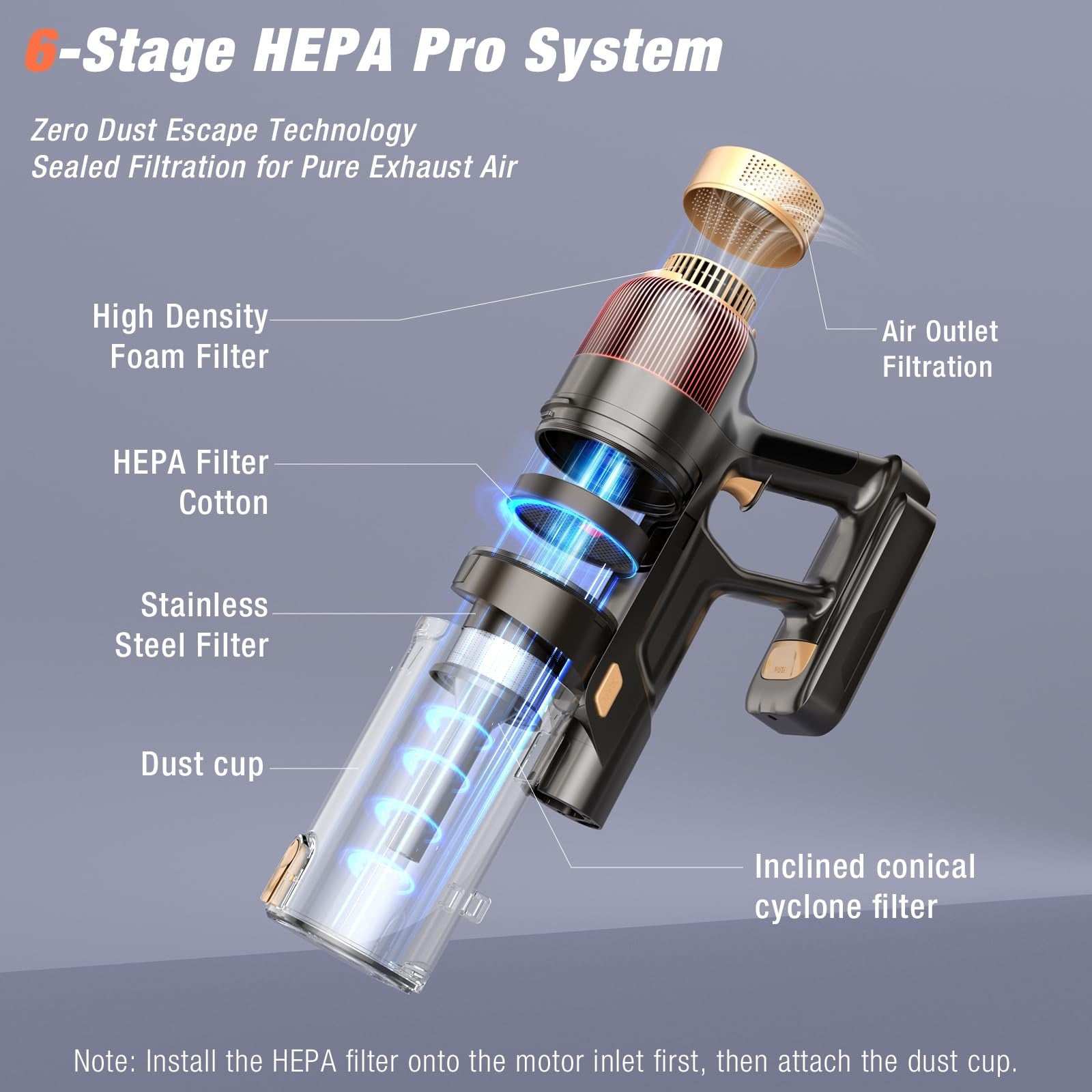 VBUOO Cordless Vacuum 580W 48KPA 70 Mins for Home Self-Standing